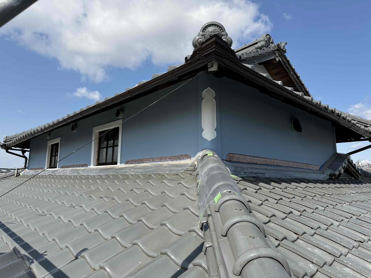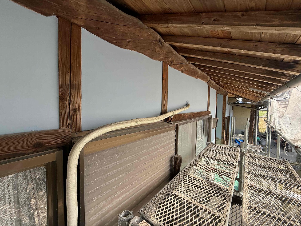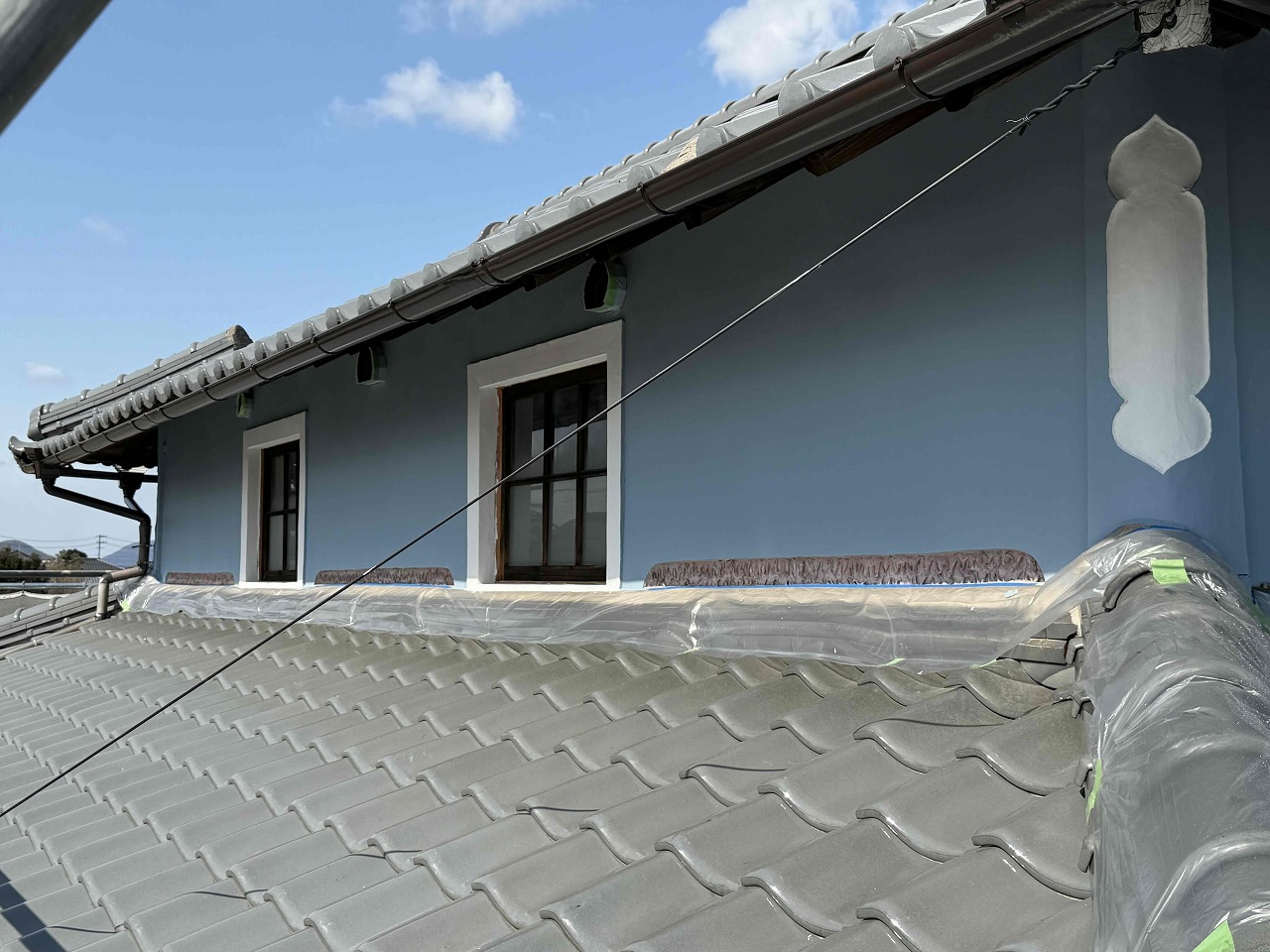 先日、漆喰壁の左官工事が完了しており、本日漆喰壁の塗装を行いました。明日も引き続きよろしくお願いいたします!?
