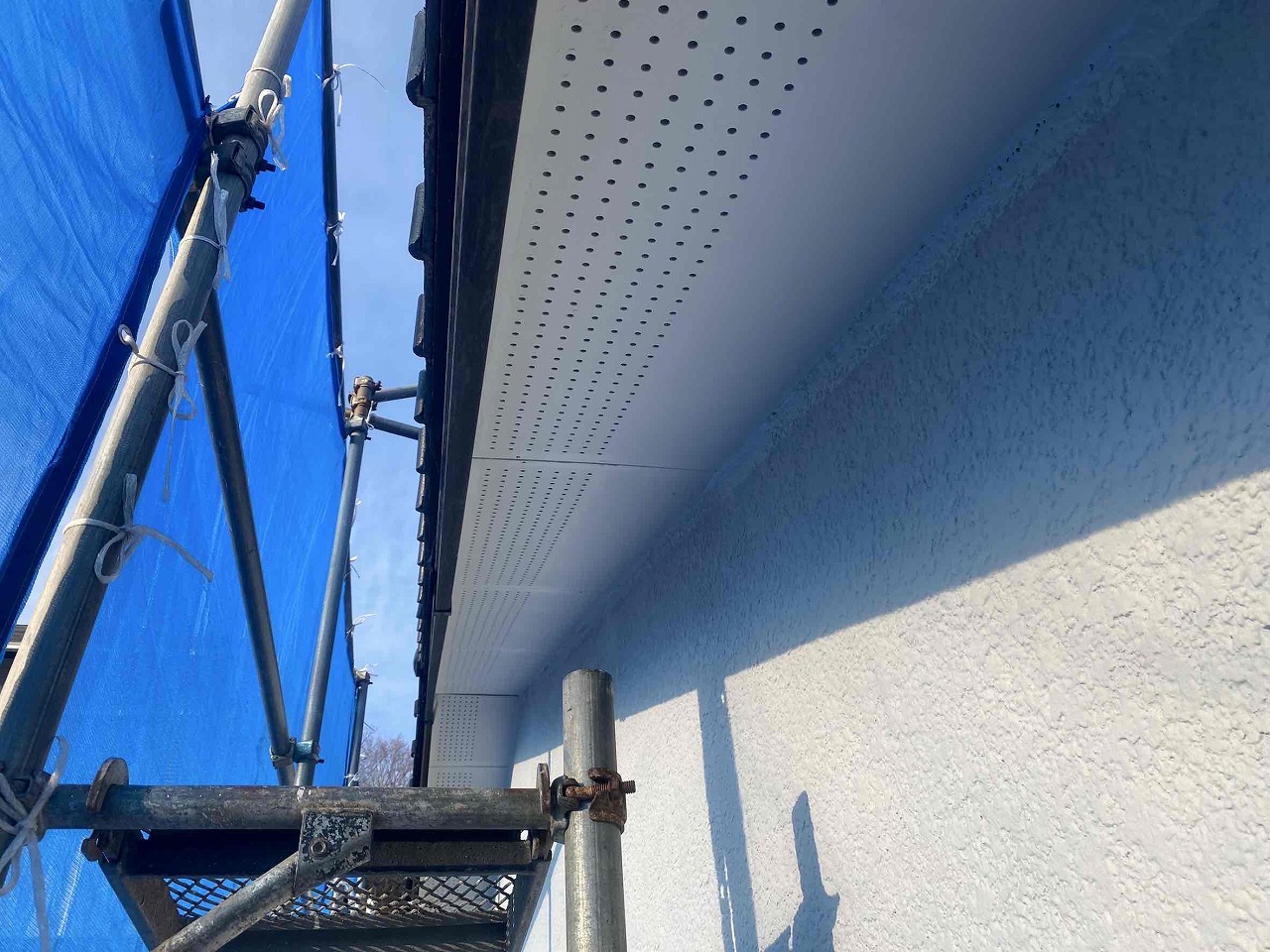 本日、軒天塗装工事の上塗り(2回目塗装)を行いました。明日は、外壁塗装工事の中塗り(2回目塗装)を行っていく予定となっております。引き続きよろしくお願いいたします!?