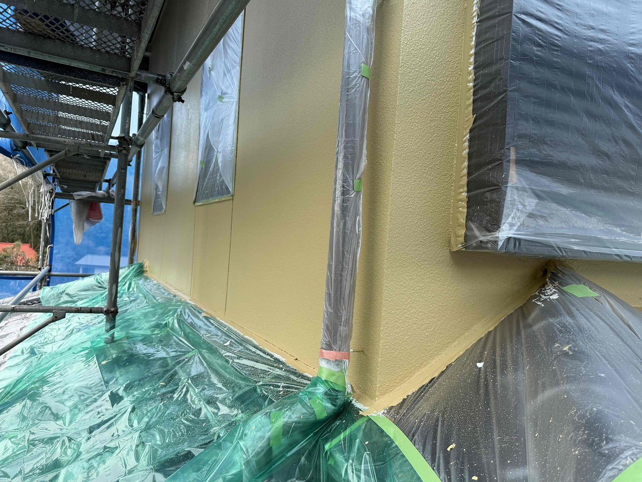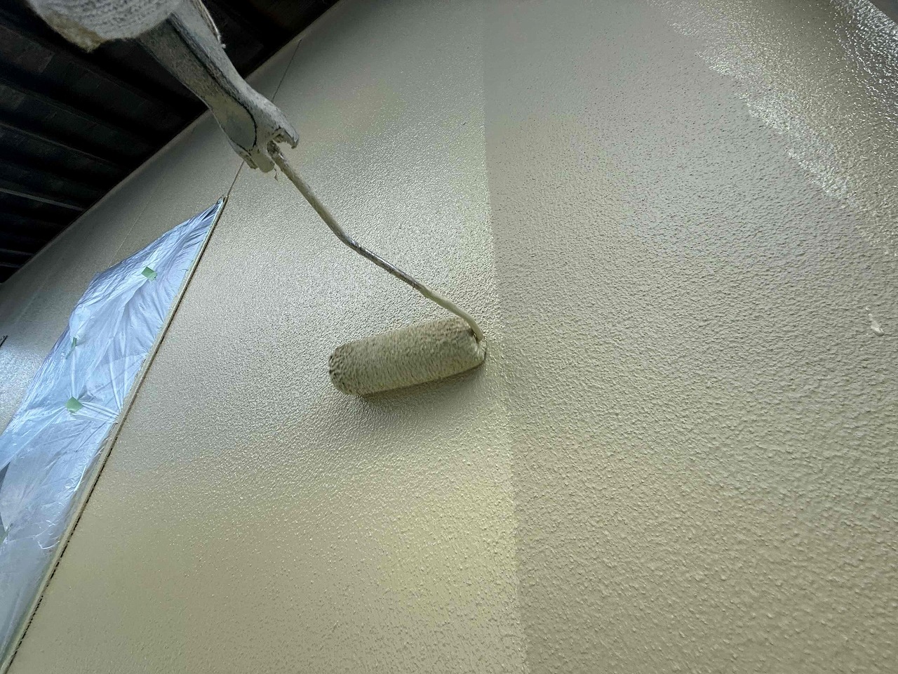 先日、外壁塗装の中塗り(2回目塗装)が完了しており、本日は上塗り(3回目塗装)を行いました。明日は雨樋などの付帯パーツ類の塗装を行っていく予定となっております。引き続きよろしくお願いいたします!?