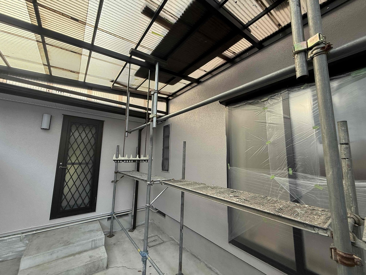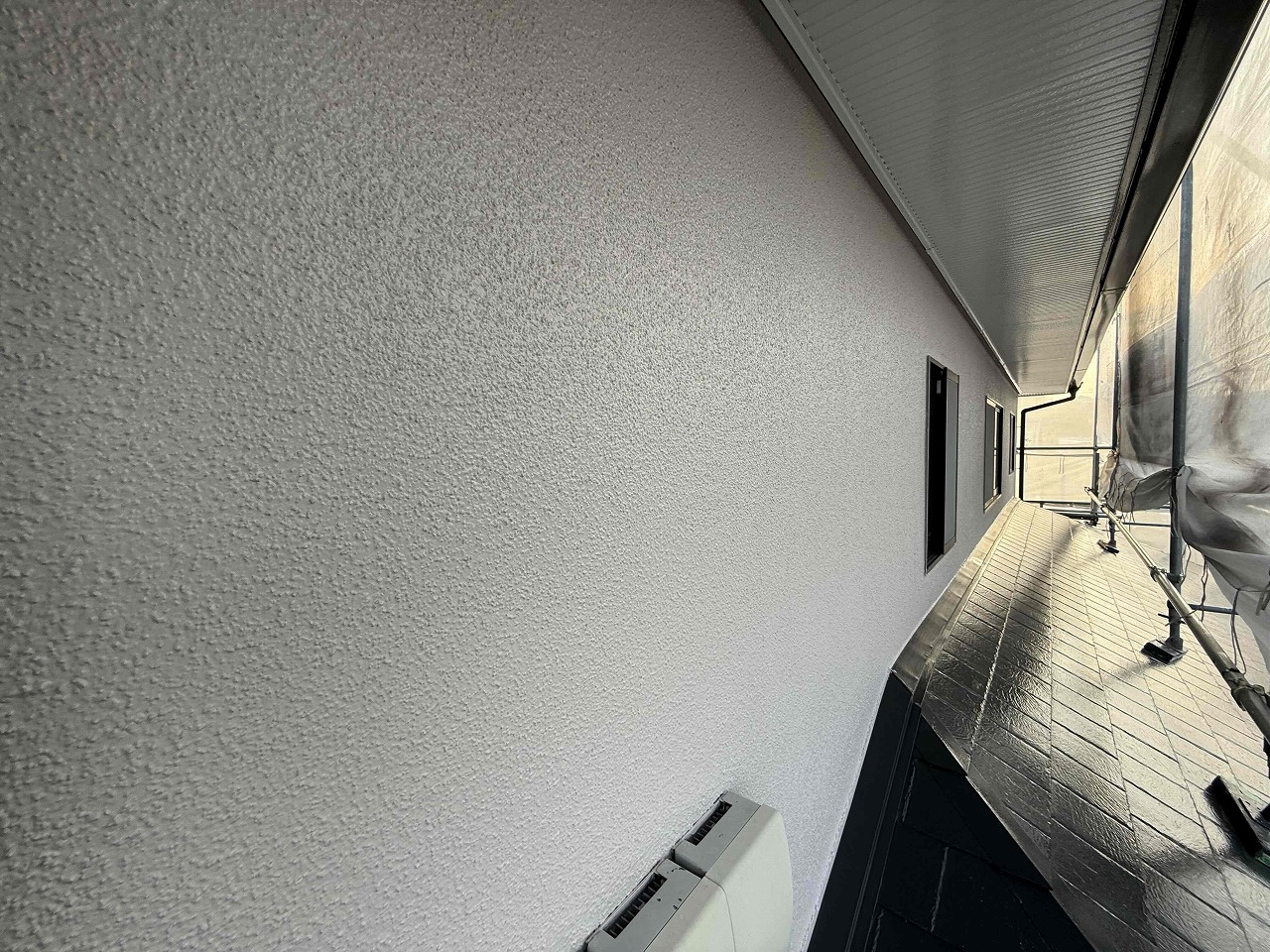 先日、外壁塗装の中塗り(2回目塗装)が完了しており、本日は上塗り(3回目塗装)を行いました。明日は日曜日で職人が休みのため、月曜日より続きを行って行く予定となっております。引き続きよろしくお願いいたします!