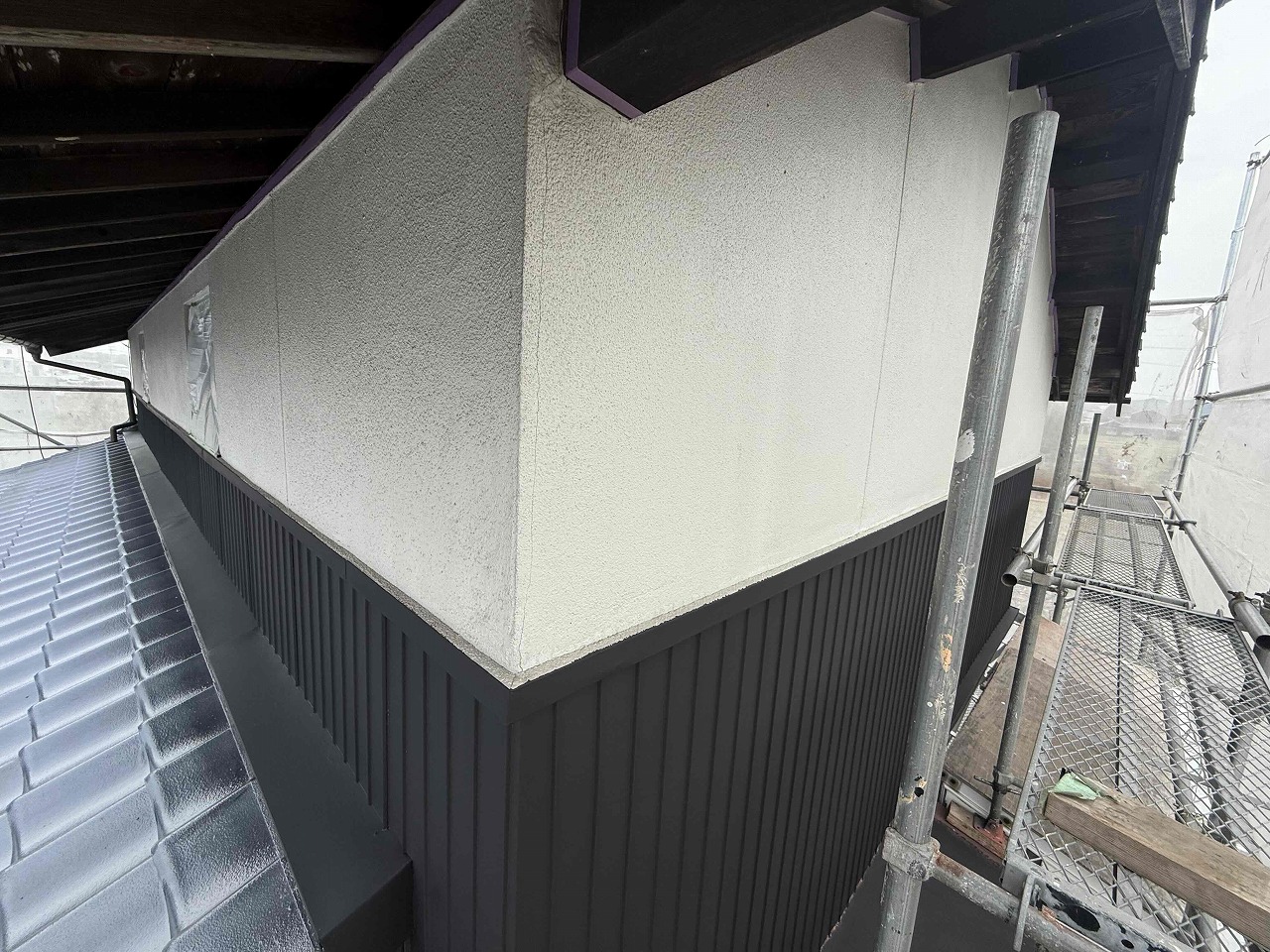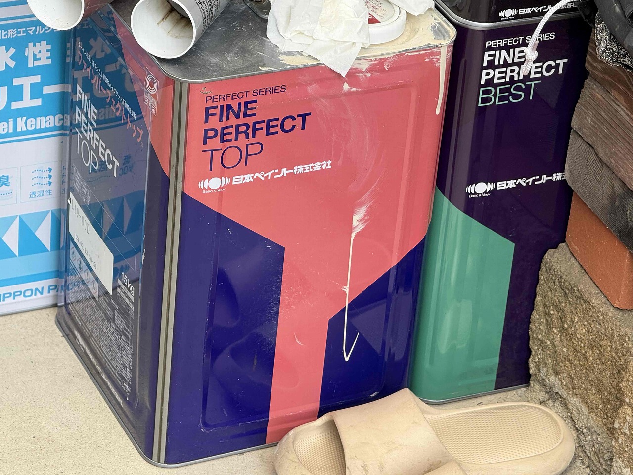 先日、外壁塗装の下塗り(1回目塗装)が完了しており、本日は中塗り(2回目塗装)を行いました。明日は外壁塗装はいったんお休みし、屋根の塗装を行っていく予定となっております。引き続きよろしくお願いいたします!?
