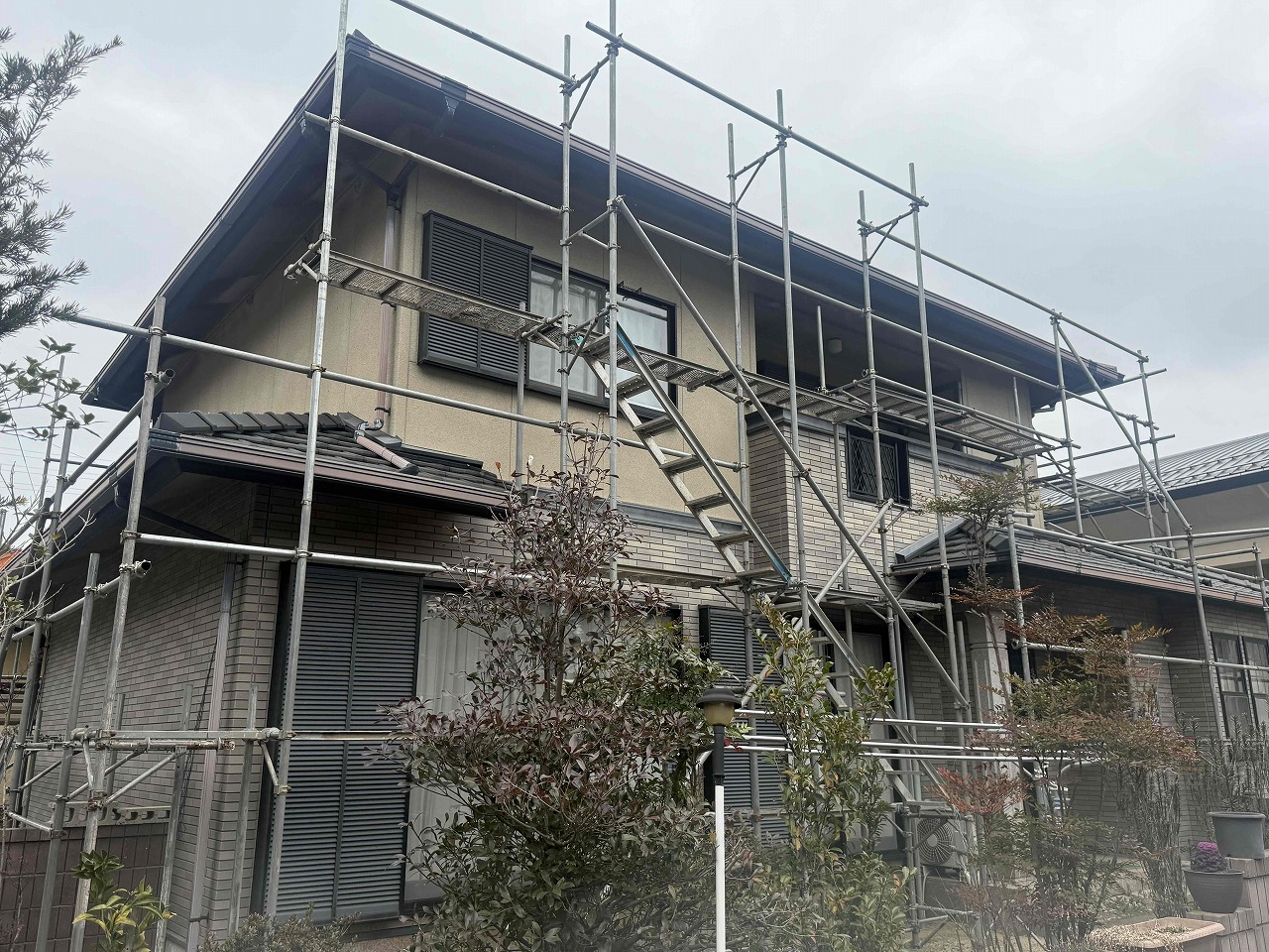 香川県高松市塩江町にて外壁塗装工事の仮設足場を設置いたしました!