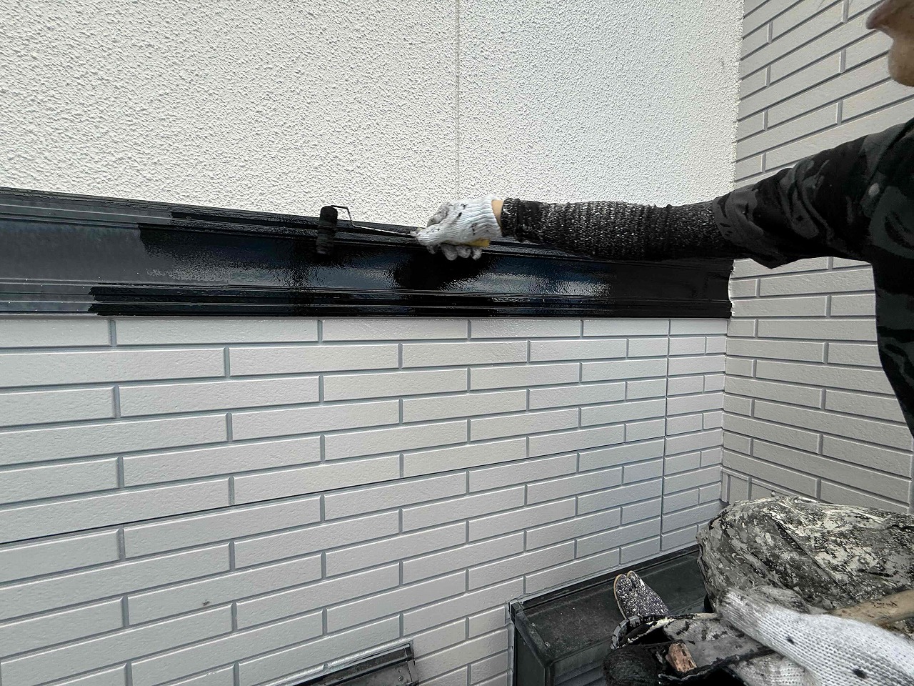 先日、外壁塗装工事が完工しており、本日は専用のハケやローラーを使い、付帯パーツ類の塗装を行いました。明日も引き続きよろしくお願いいたします!?