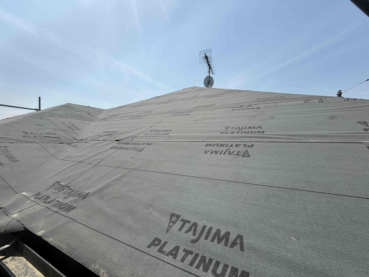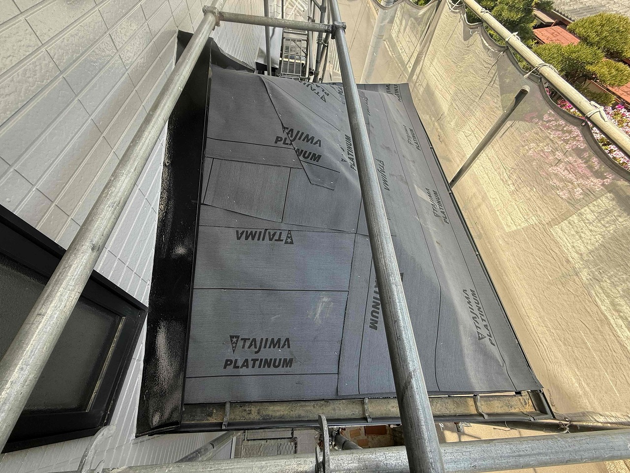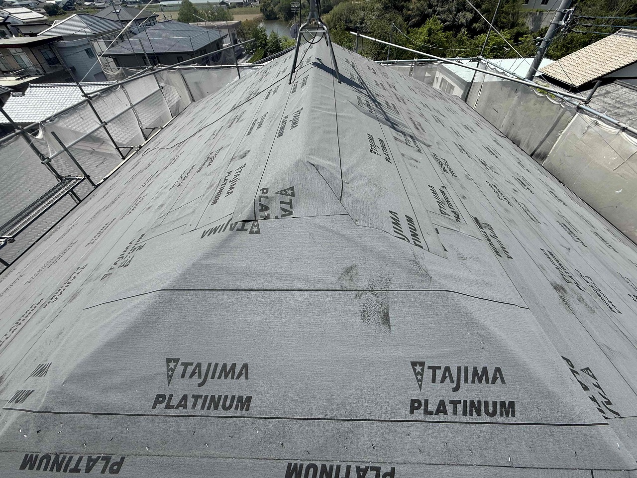 本日、ルーフィング(防水シート)の施工が完了し、次回より、瓦の新設(ケイミューROOGA雅)を行っていく予定となっております。引き続きよろしくお願いいたします!?
