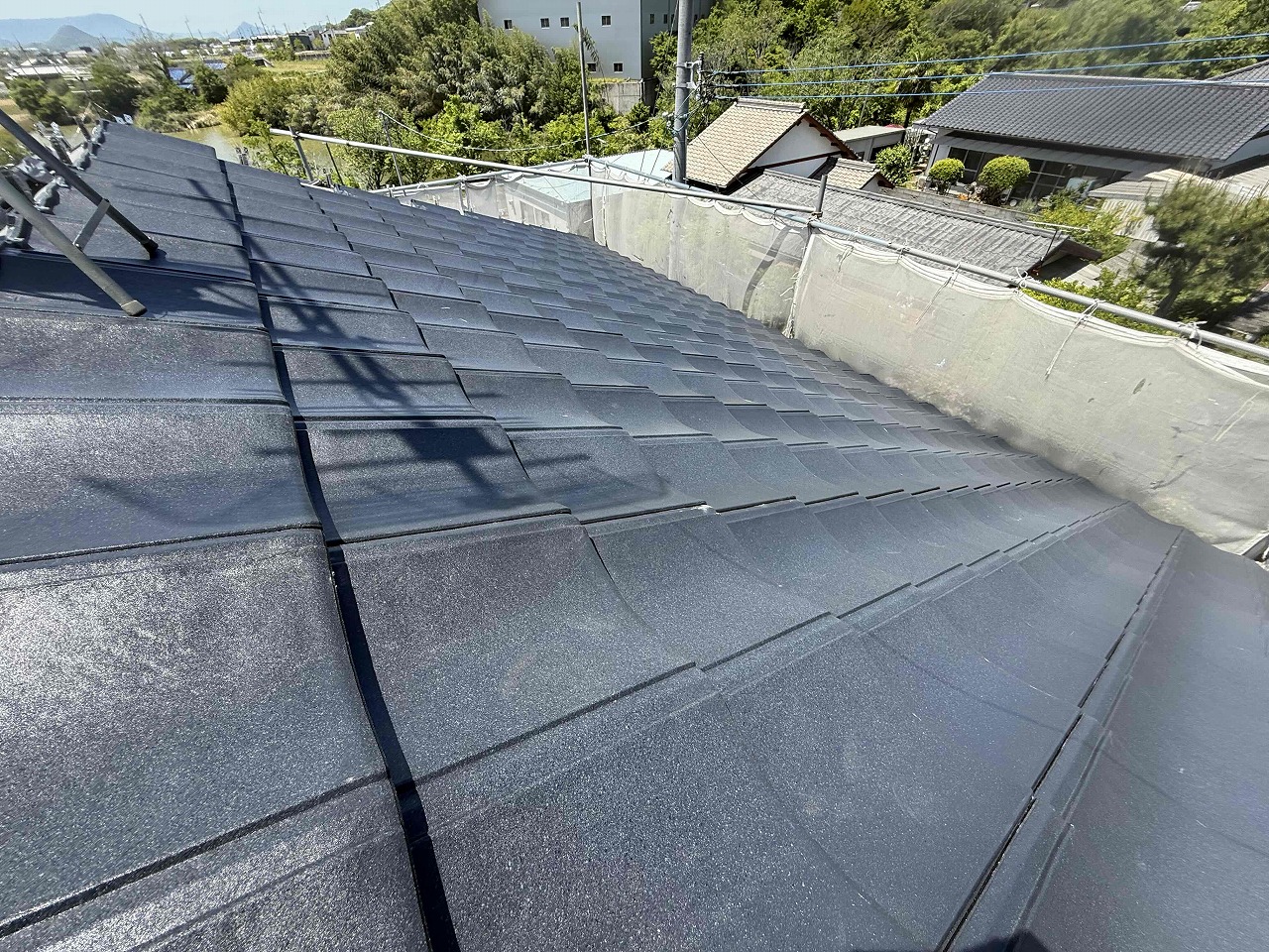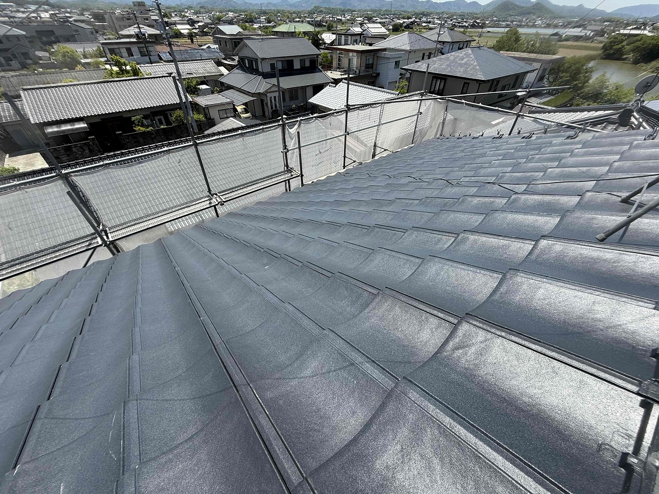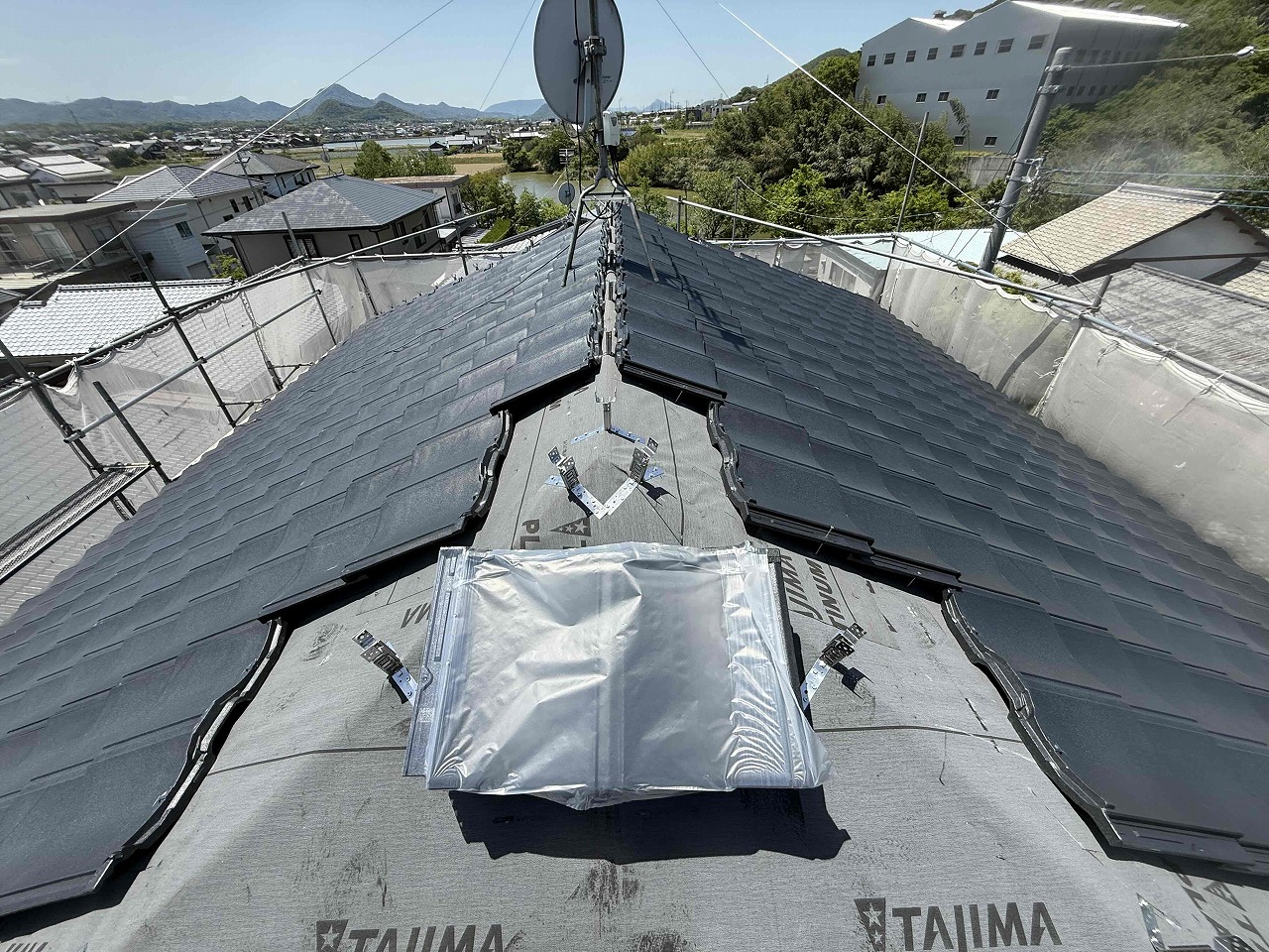 先日に引き続き瓦葺き替え工事(ケイミューROOGA雅)を行いました!明日も引き続きよろしくお願いいたします!?