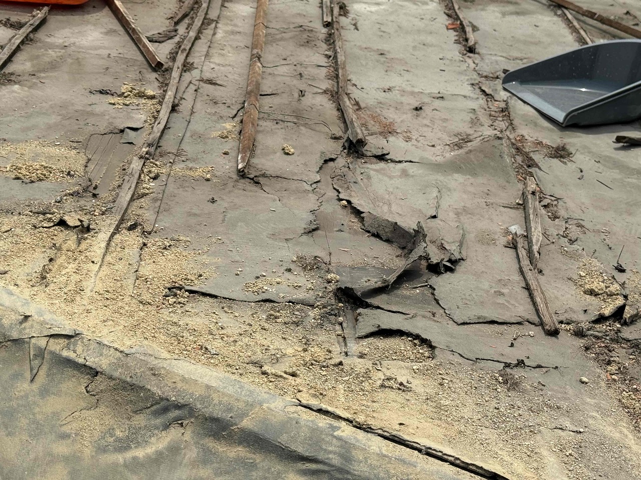 先日、外壁塗装工事を施工させていただいたお客様邸にて、本日より瓦葺き替え工事(ケイミューROOGA雅)の施工を行う前の既存の瓦を撤去作業を行いました。写真2枚目のようにルーフィング(防水シート)が完全に機能性を失っており、雨漏りが行っている状態でした。明日より、下地調整を行っていく予定となっております。引き続きよろしくお願いいたします!?