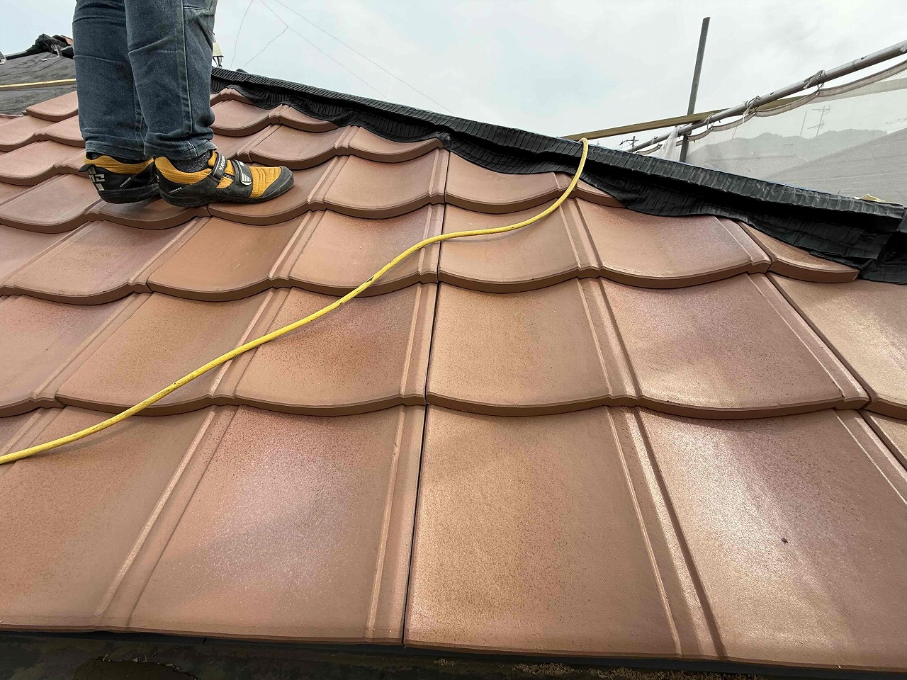 先日に引き続き、瓦葺き替え工事(ケイミューROOGA雅)を行いました。