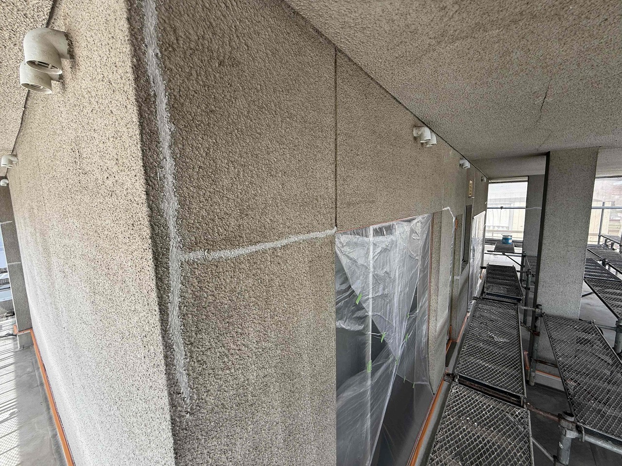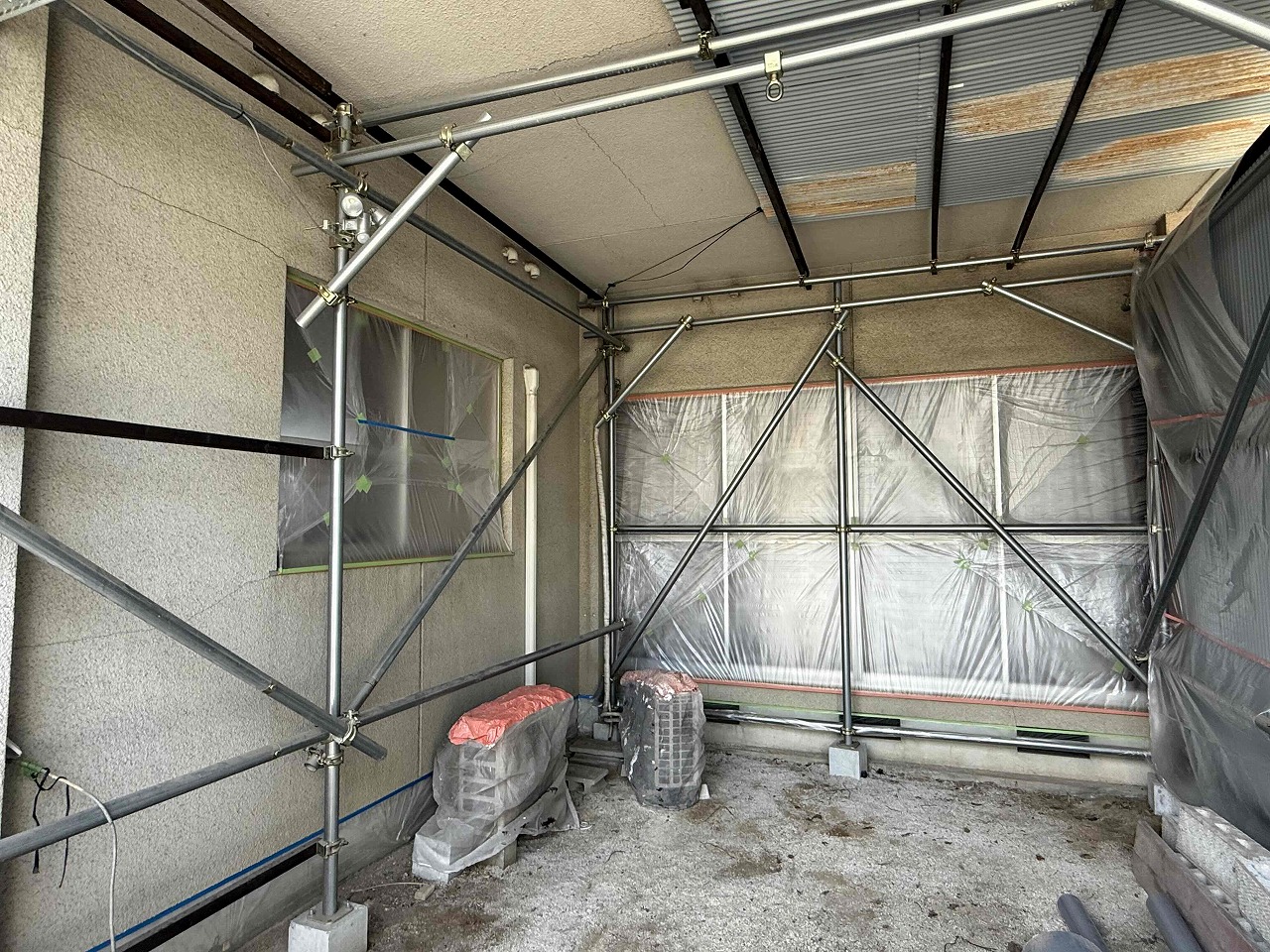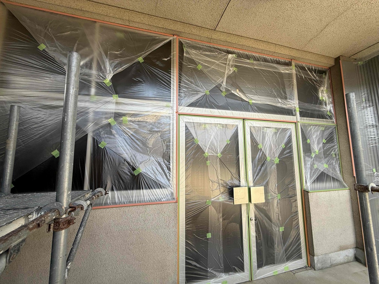 先日、養生作業が完了しており、本日クラック補修と2階屋上の古くなった防水シートの撤去を行いました。明日、シート撤去後のお掃除等を行い、防水工事ができる準備を行っていく予定となっております。引き続きよろしくお願いいたします!?