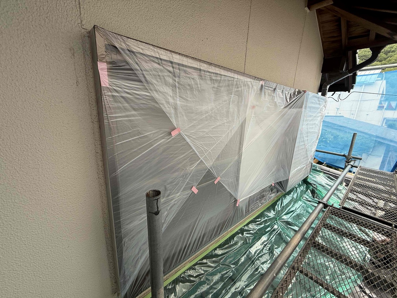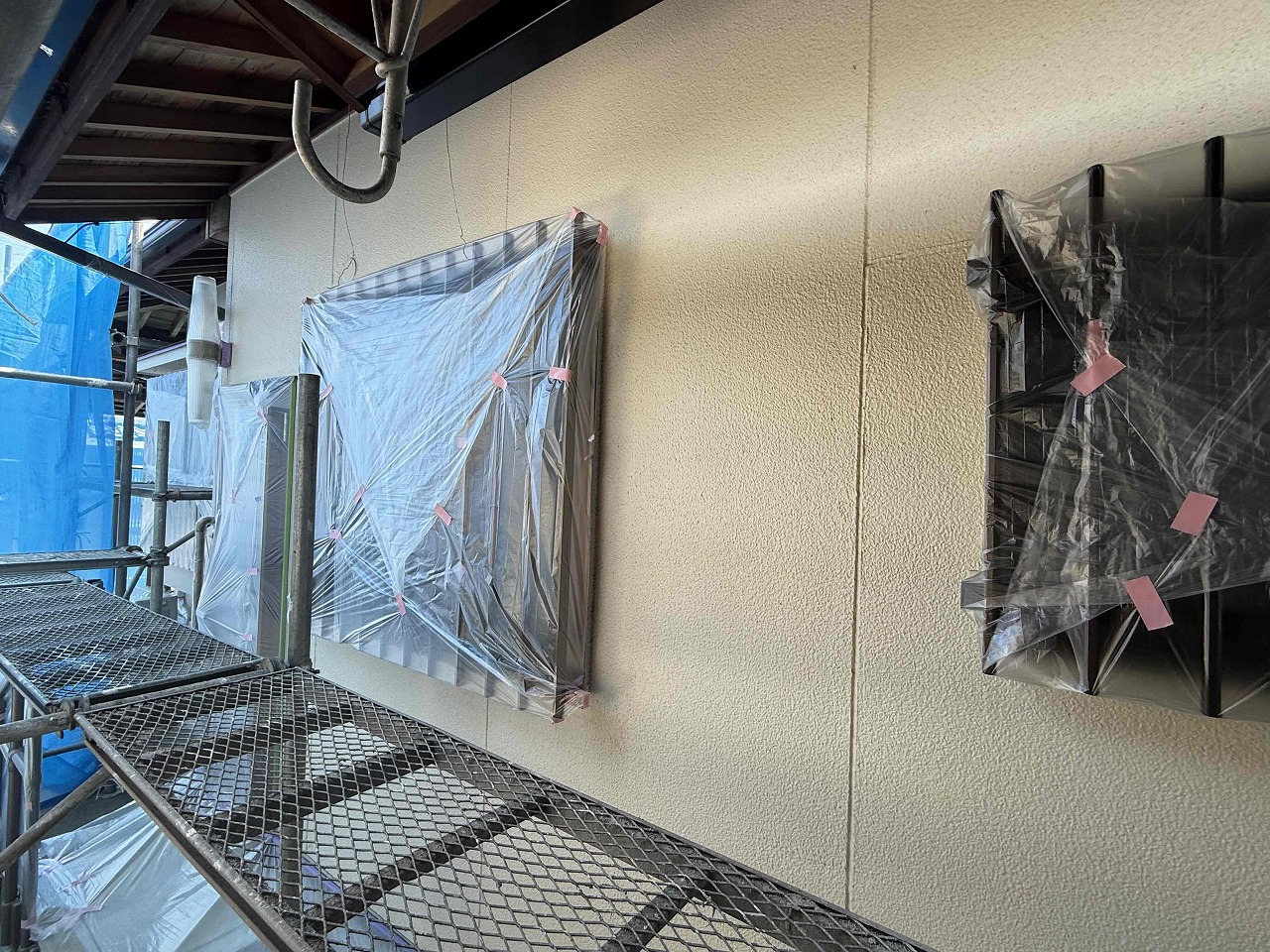 先日、高圧洗浄が完了しており、本日養生作業が完了いたしました。
