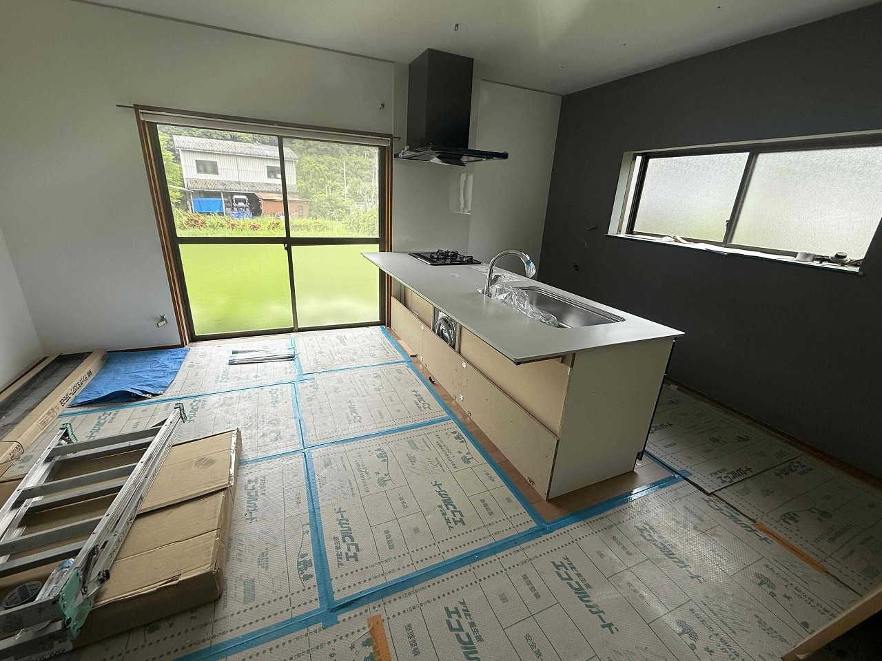 本日、キッチンの取り付け(アイランドキッチン)を行いました。