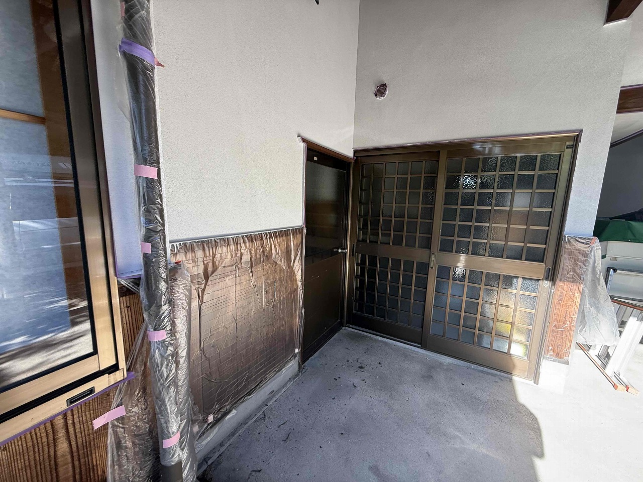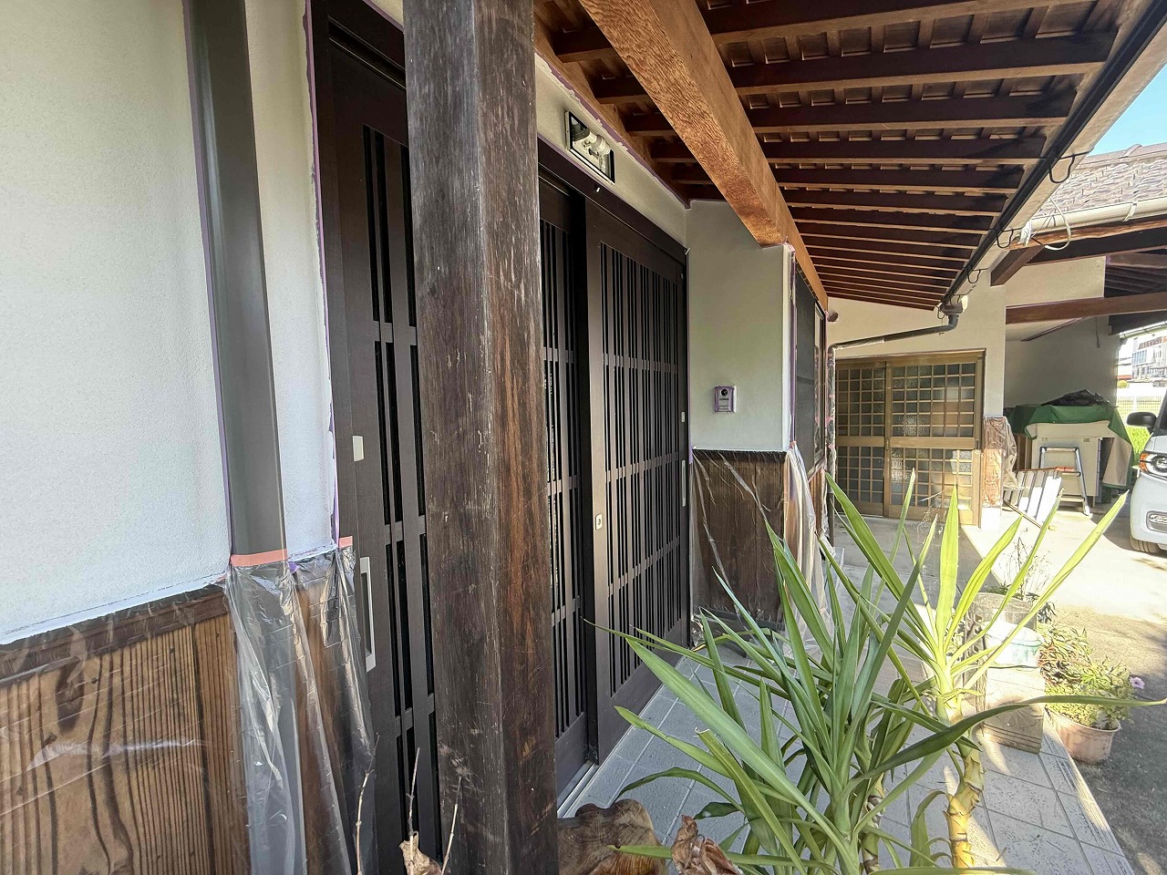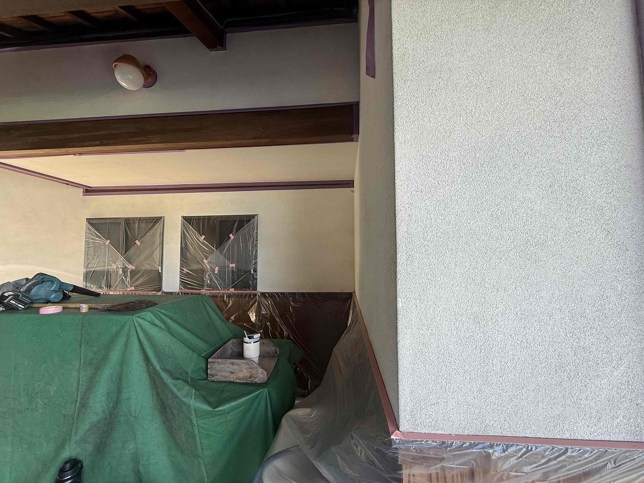 先日、高圧洗浄が完了しており、午後より外壁塗装工事の下塗り(1回目塗装)を行いました。明日は車庫の錆止め塗装(1回目塗装)を行う予定となっております。引き続きよろしくお願いいたします!?