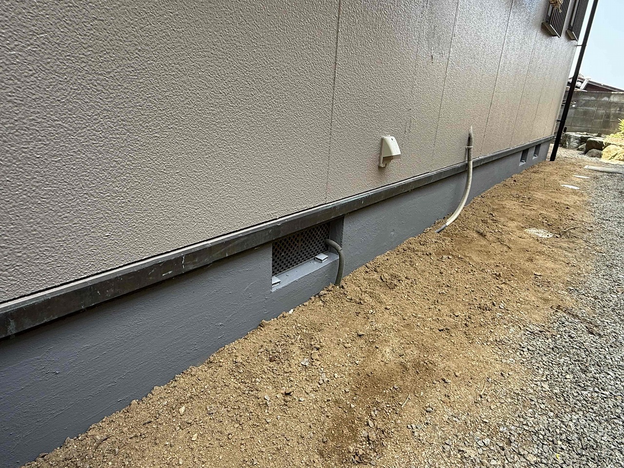 先日、基礎の補強材塗装(パワーアラストFL)を行い、本日、トップコート(上塗り)を行いました。こちらの現場はすべての工事が完了いたしました。