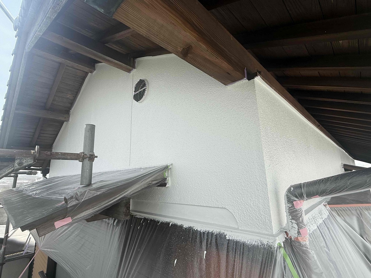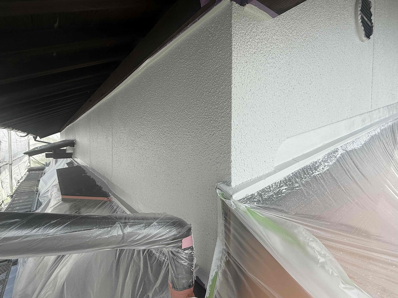 先日、養生作業と外壁塗装の下塗り(1回目塗装)が完了しており、本日は中塗り(2回目塗装)を行いました。明日は上塗り(3回目塗装)を行っていく予定となっております。引き続きよろしくお願いいたします!?