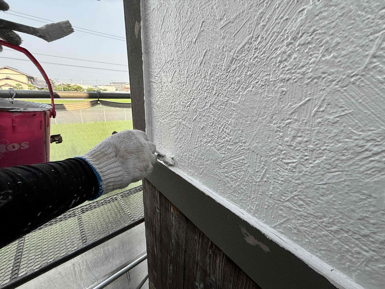 先日に引き続き外壁塗装工事を行いました!本日は中塗り→上塗りを行いました。明日も引き続きよろしくお願いいたします!?