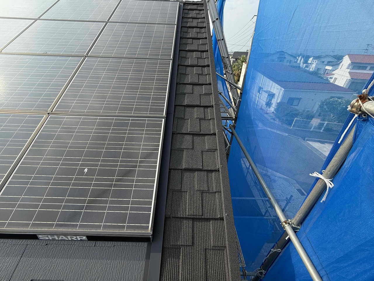 太陽光パネルの下部を施工してしまうと雨水の流れが悪くなるため、下部に関しては4回塗りを施工いたしました。引き続きよろしくお願いいたします!?
