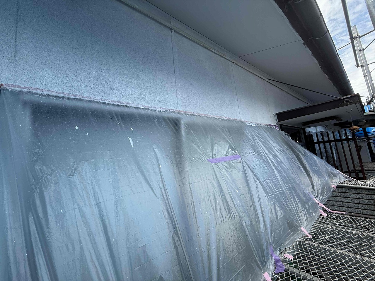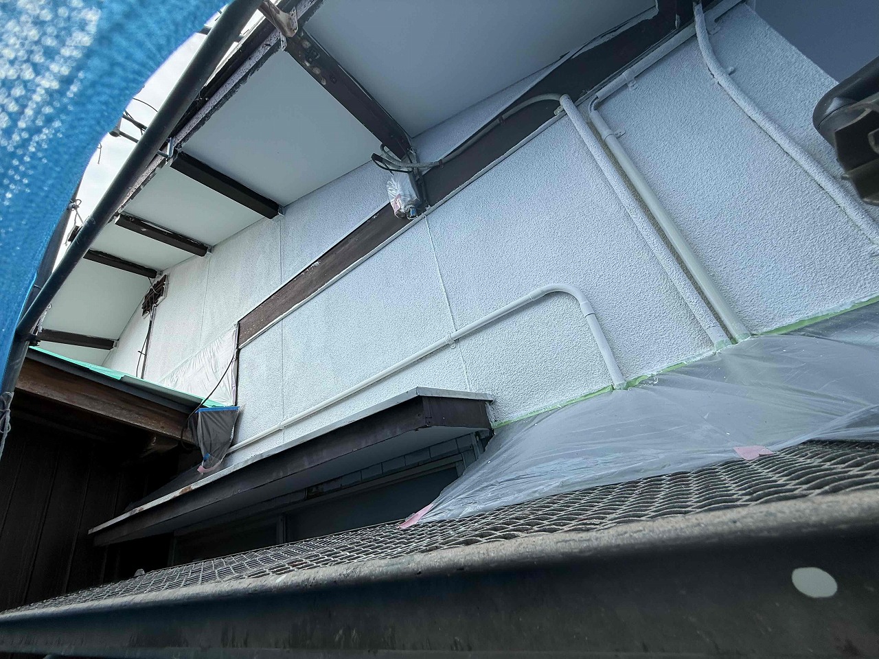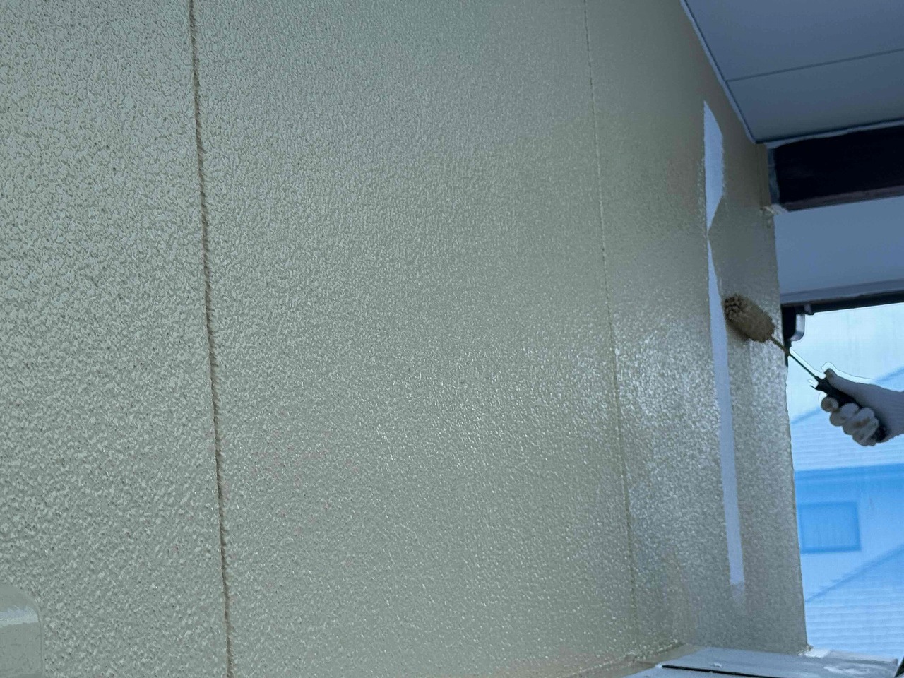 先日、外壁塗装の下塗り(1回目塗装)が完了しており、本日は中塗り(2回目塗装)を行いました。明日は中塗り(2回目塗装)の続きを行って行きます!引き続きよろしくお願いいたします!?