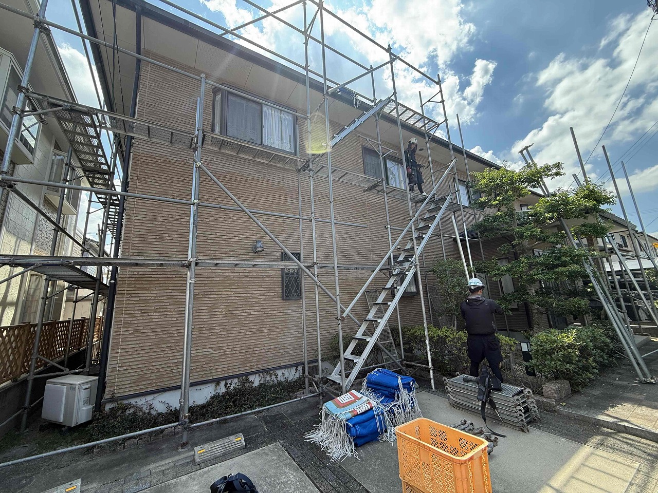 明日より、外壁塗装前の高圧洗浄+ケレン作業を行っていく予定となっております。