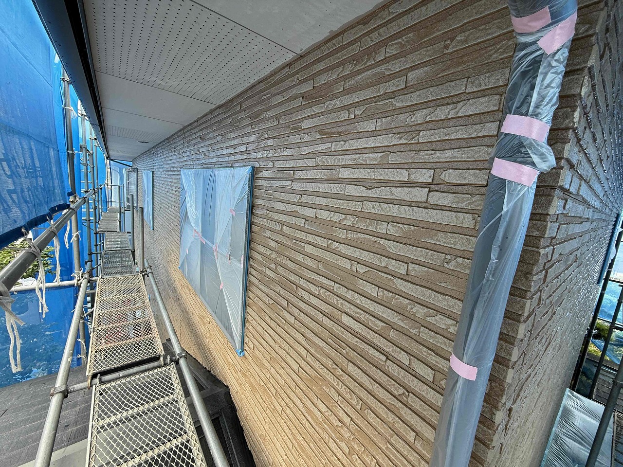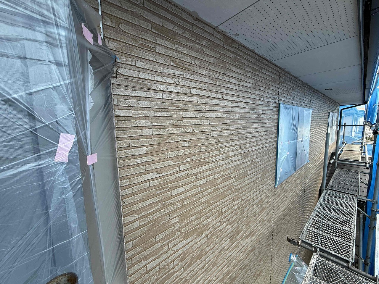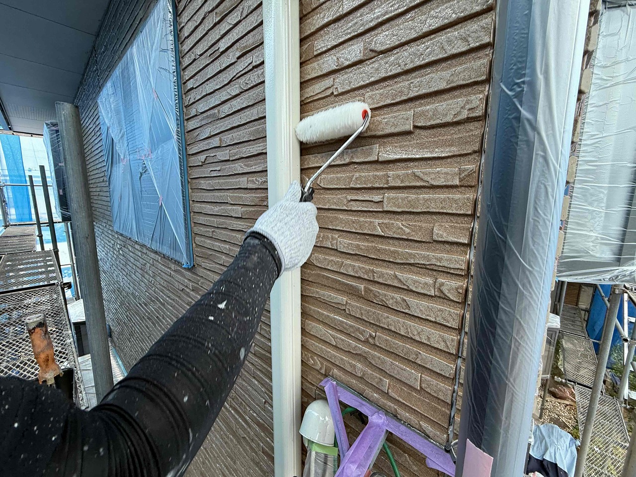 先日、下塗り(1回目塗装)が完了しており、本日は上塗り(2回目塗装)を行いました。次回は目地コーキング工事を行っていく予定となっております。引き続きよろしくお願いいたします!?