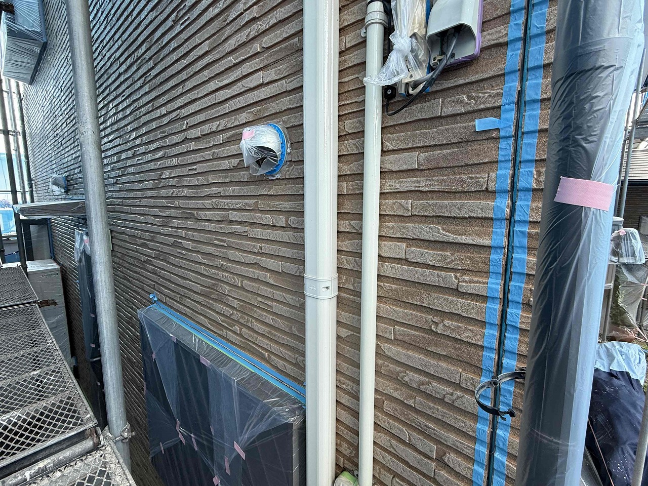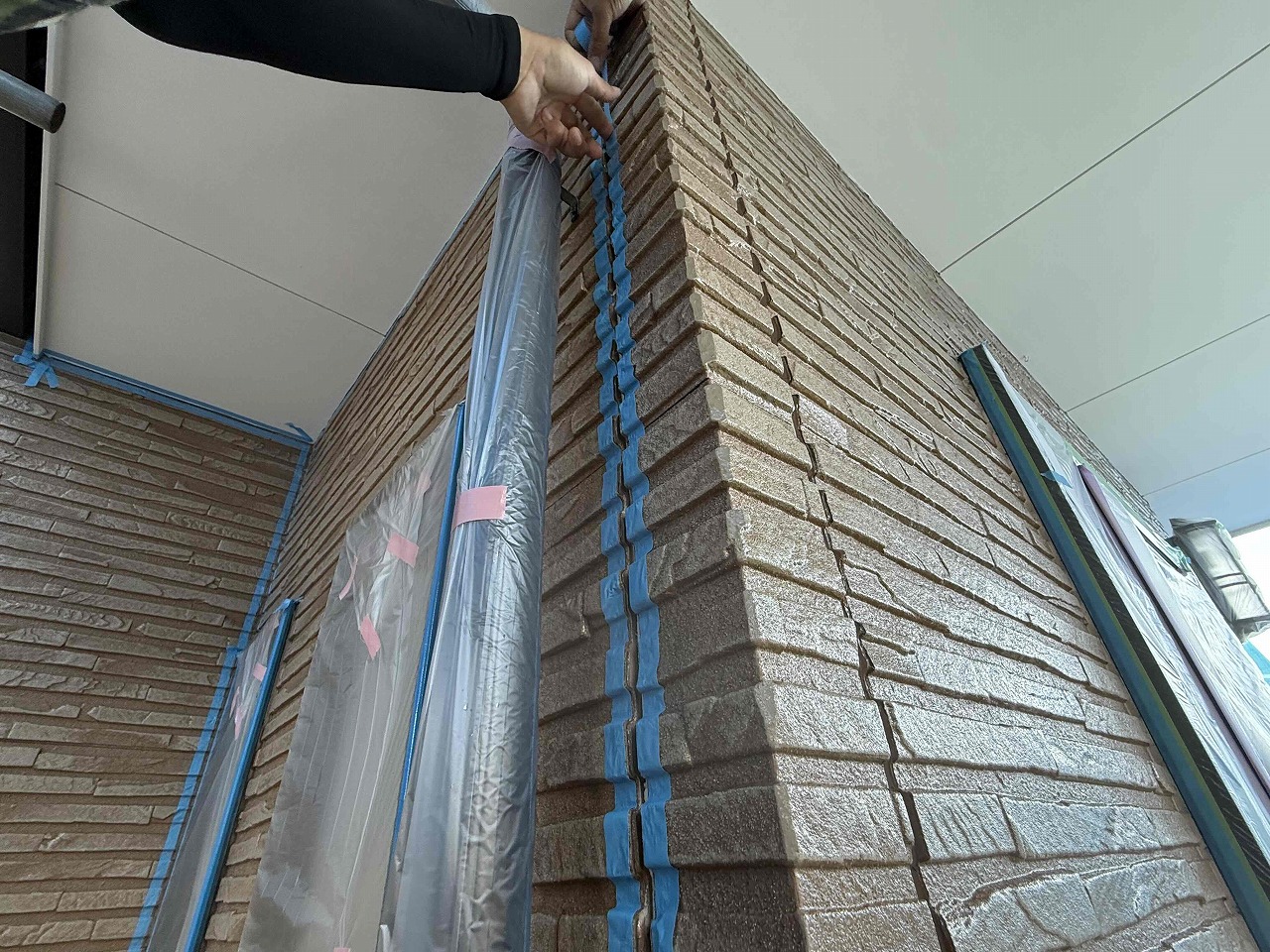 先日、外壁の塗装工事の上塗りが完了しており、本日は目地窓枠コーキングのテープ養生を行いました。引き続きよろしくお願いいたします!?