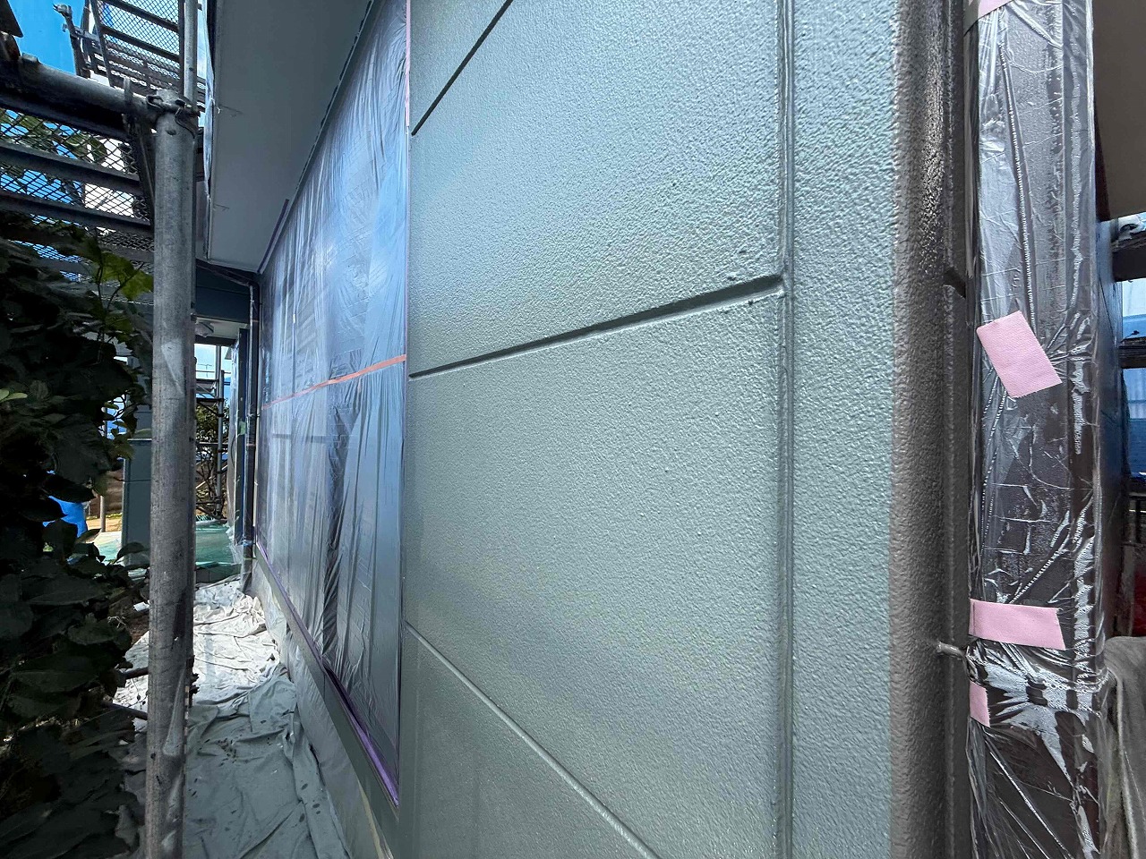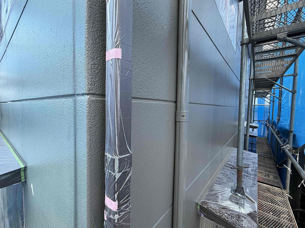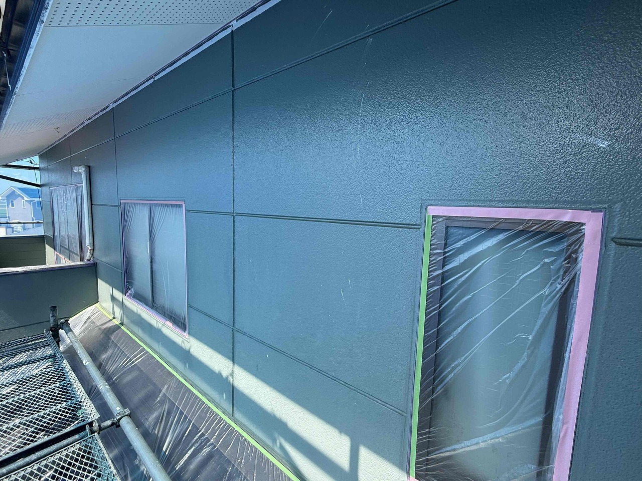 先日、養生作業とコーキング工事が完了しており、本日は外壁塗装の下塗り(1回目塗装)を行いました。次回、中塗り(2回目塗装)を行っていく予定となっております。引き続きよろしくお願いいたします!?