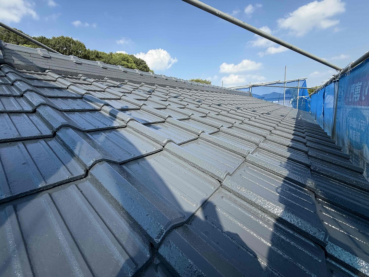先日に引き続き屋根の塗装工事(日本ペイント使用)を行いました。次回、外壁の塗装工事を行っていく予定となっております。引き続きよろしくお願いいたします!?