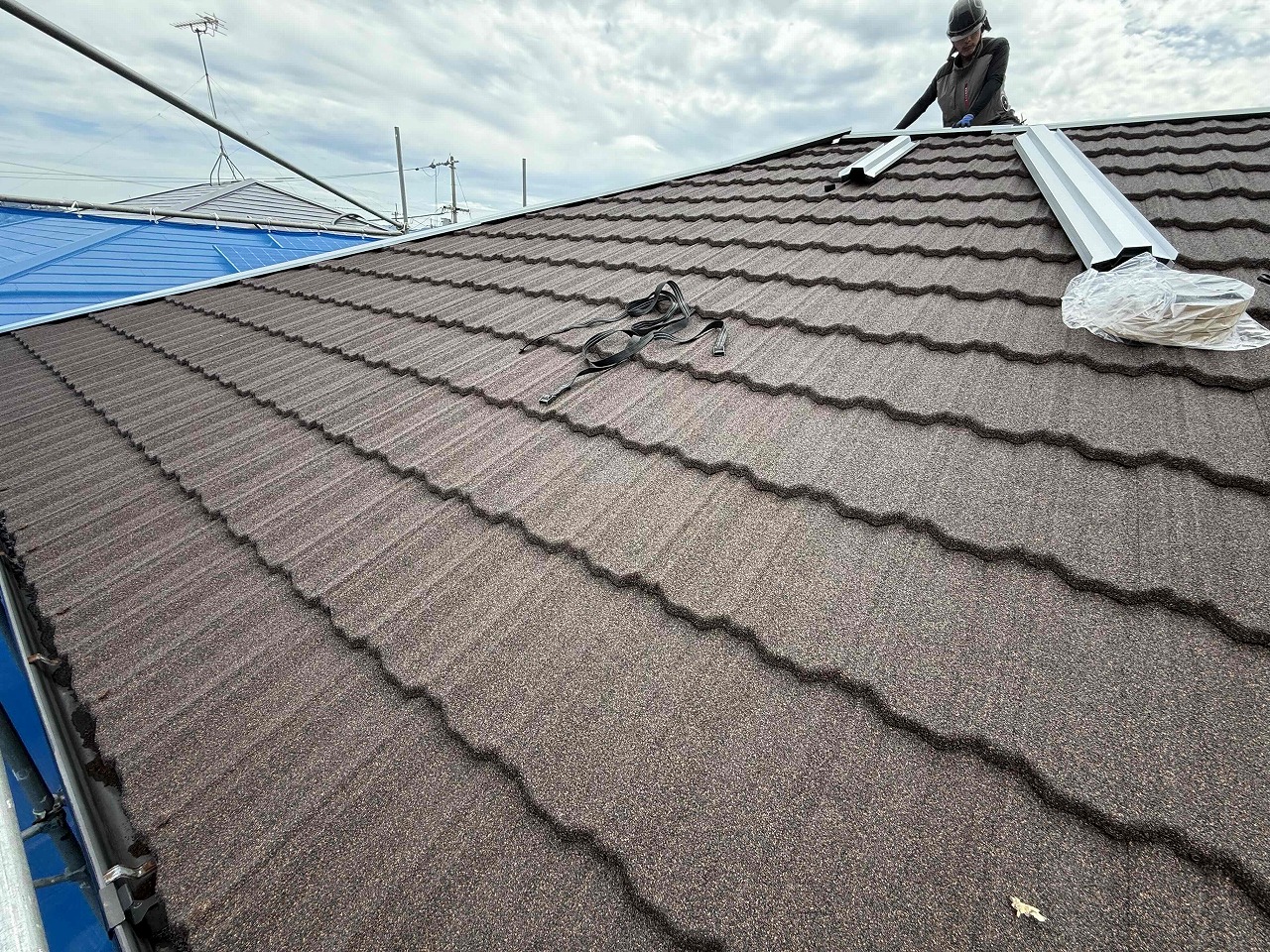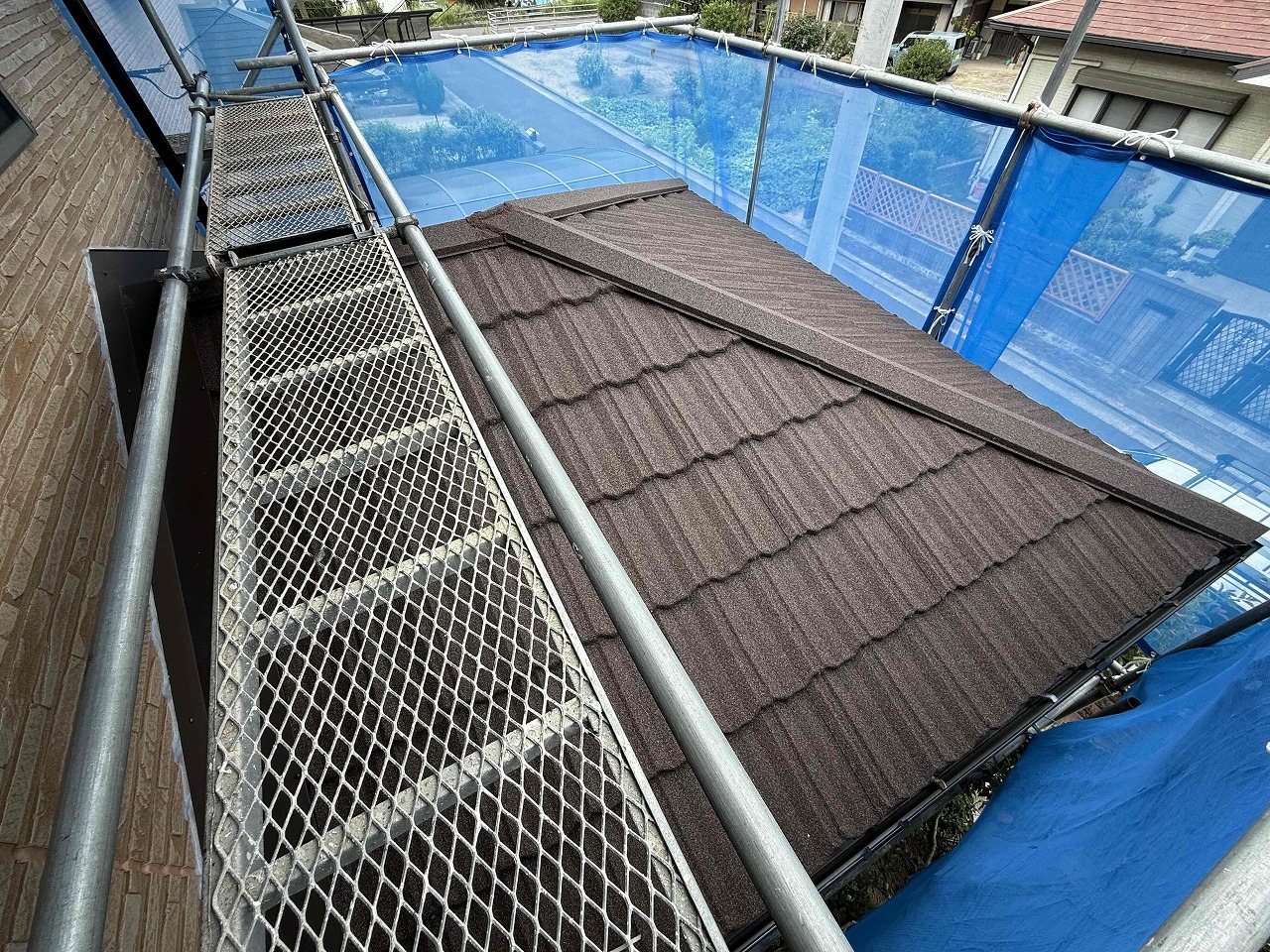本日、全ての工事が完了いたしました。後日足場を解体する予定です!