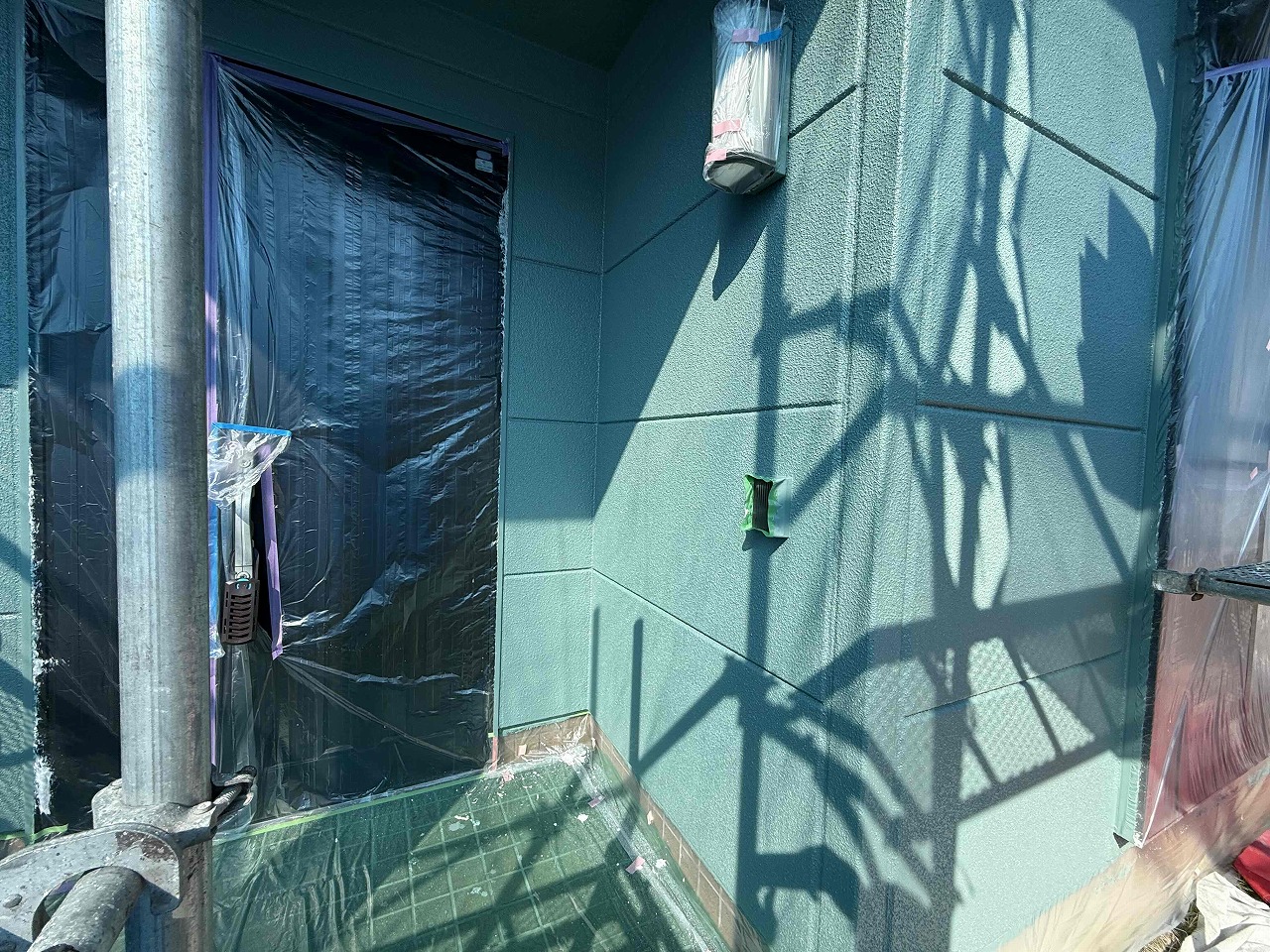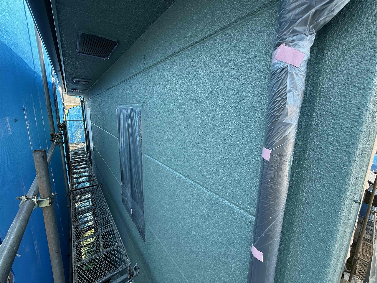 本日は、外壁塗装の中塗り(2回目塗装)を行いました。