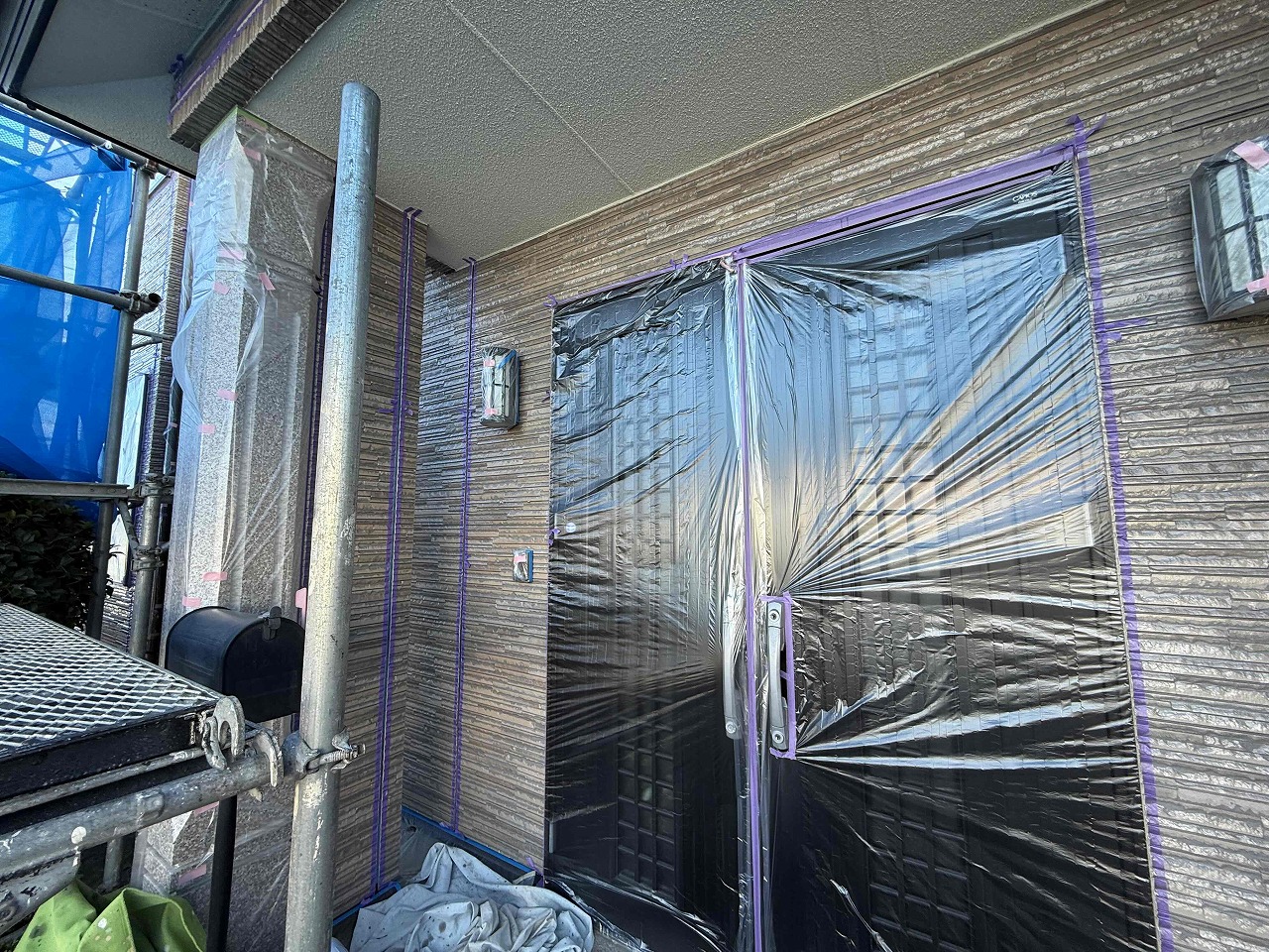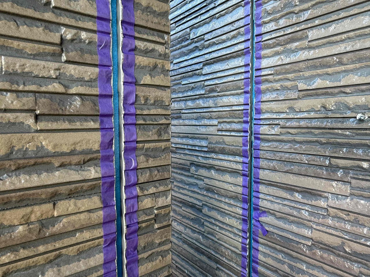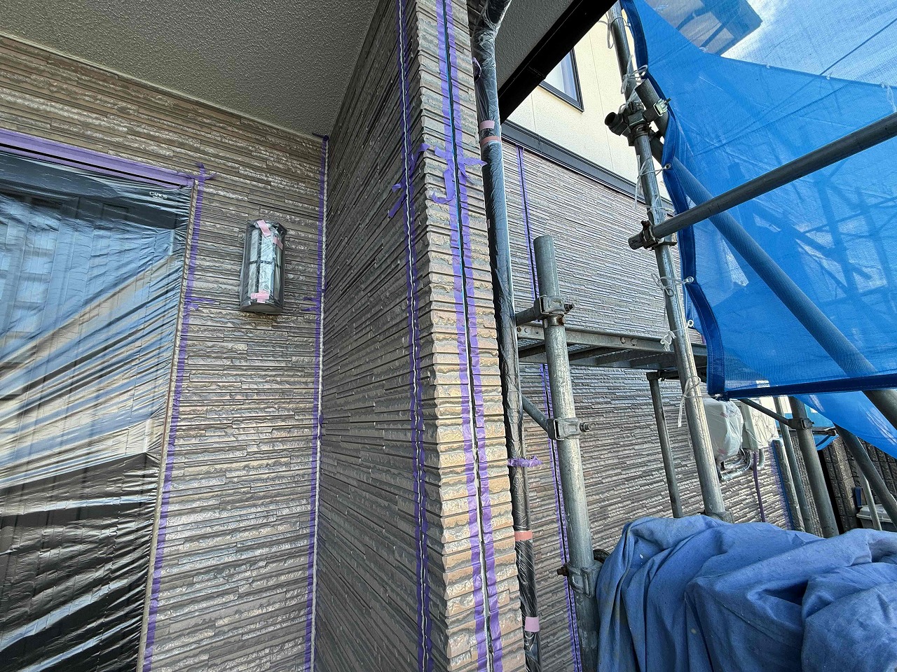 午後より、目地コーキング工事のテープ養生を行いました!