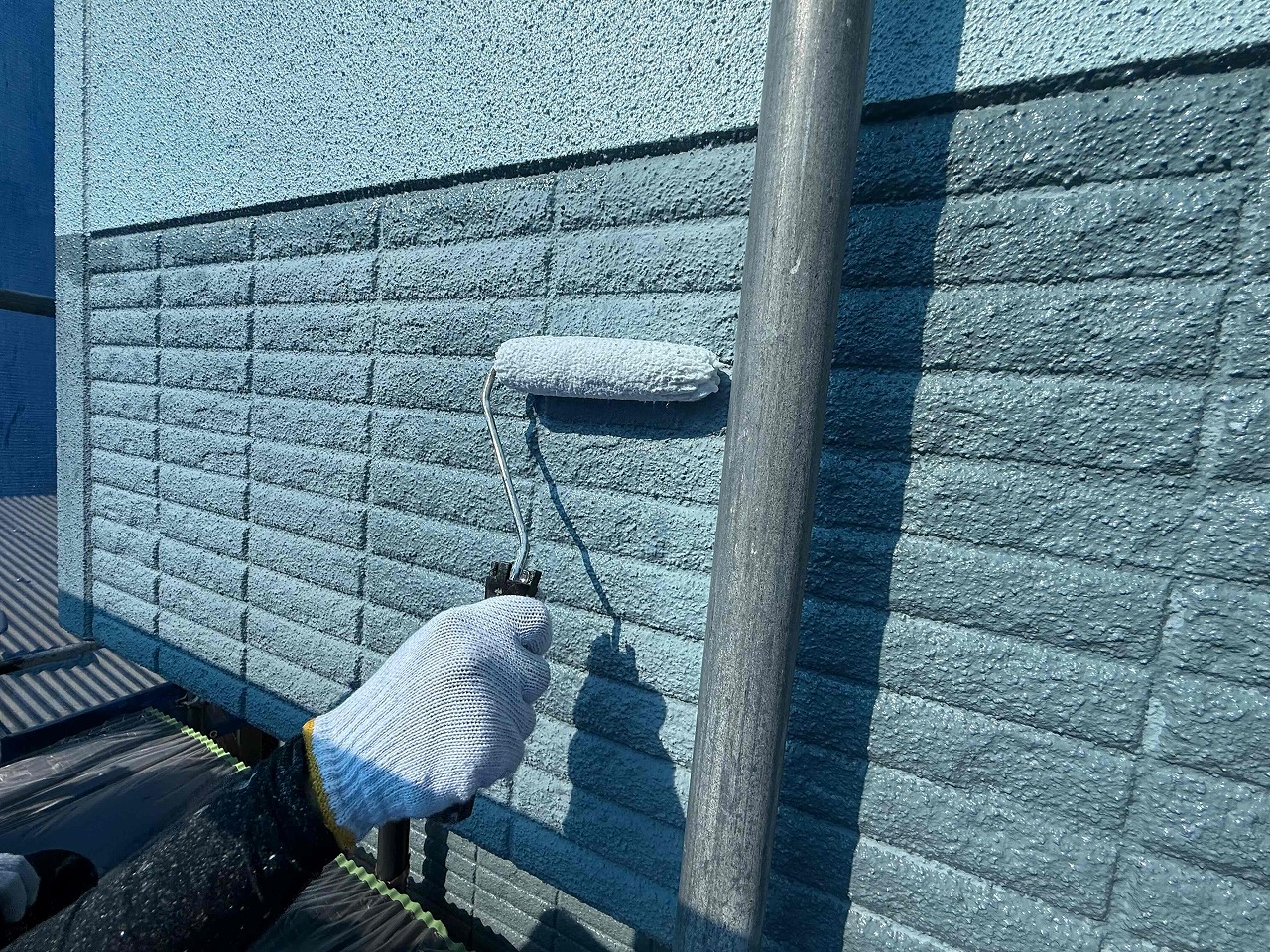 先日、外壁の養生作業が完了しており、本日、外壁塗装工事の下塗り(1回目塗装)を行いました。次回、中塗り(2回目塗装)を行っていく予定となっております。引き続きよろしくお願いいたします!?