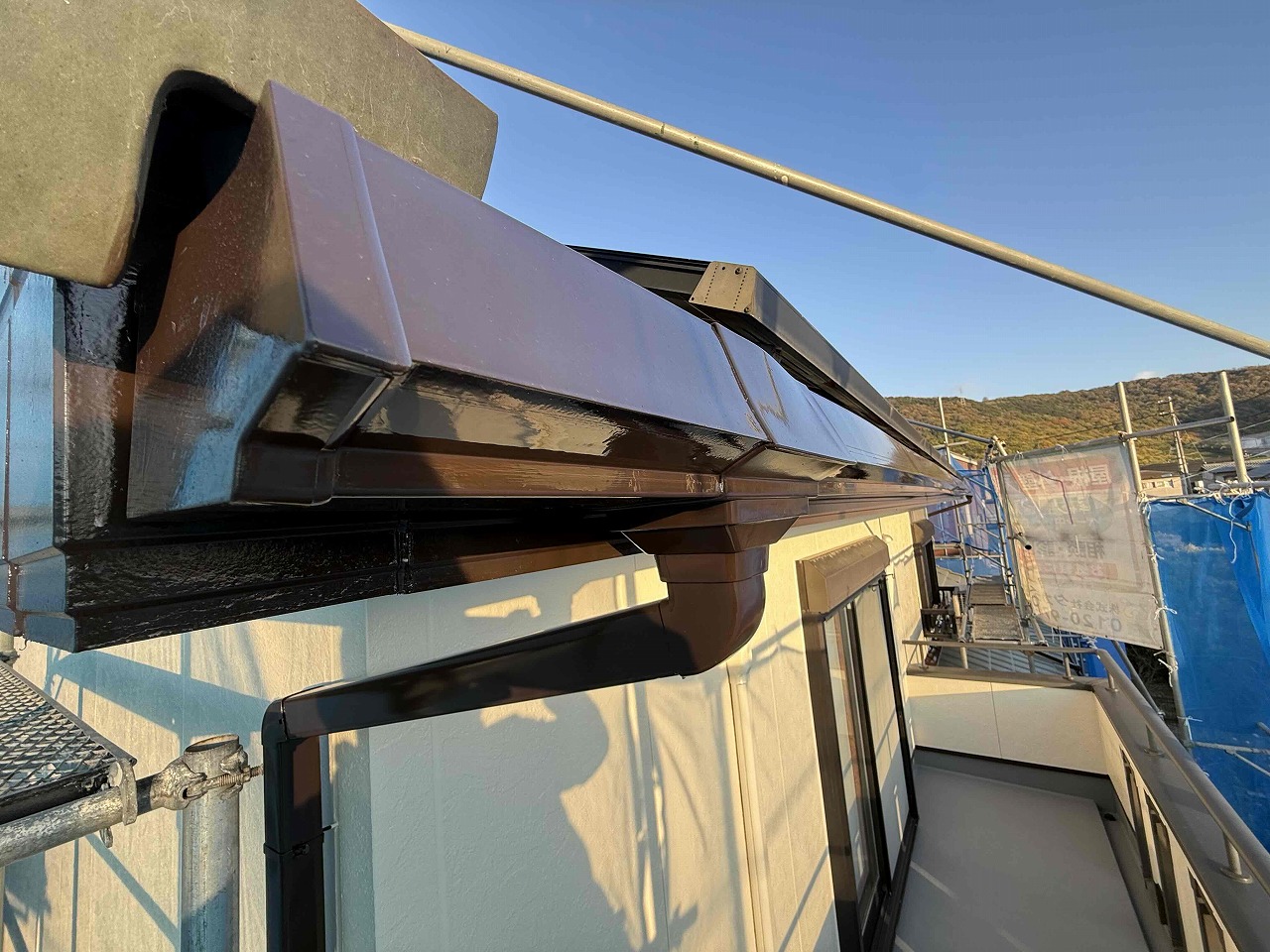 本日、付帯パーツ類の塗装の続きを行い、最終チェックと手直しを行いました。これにて全ての塗装工事が完了いたしました!明日、足場の解体作業を行う予定となっております。引き続きよろしくお願いいたします!?