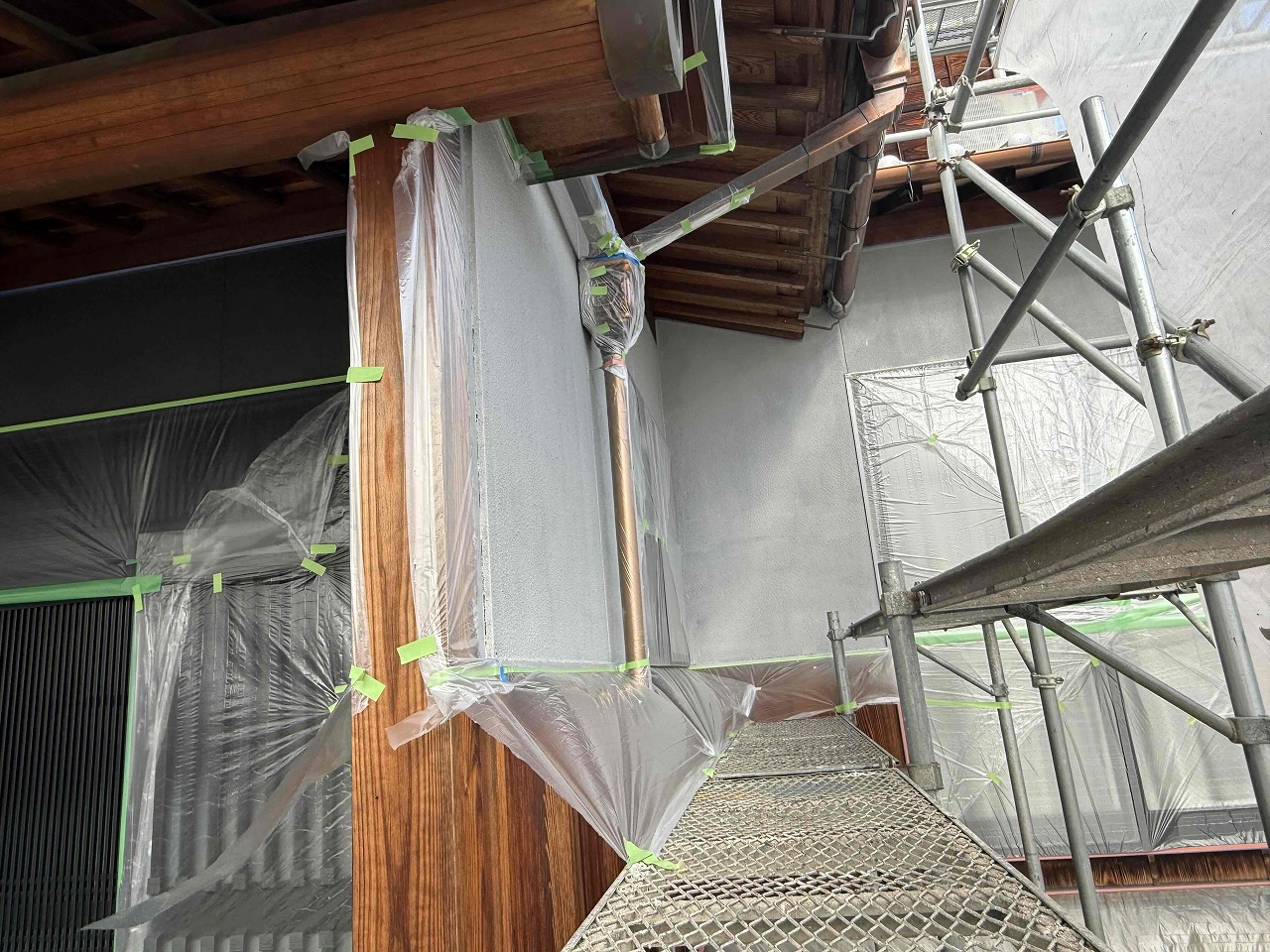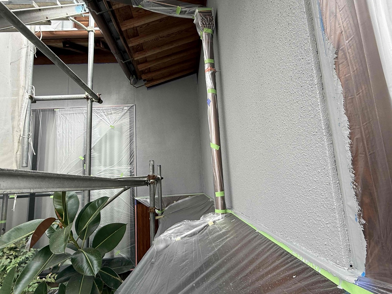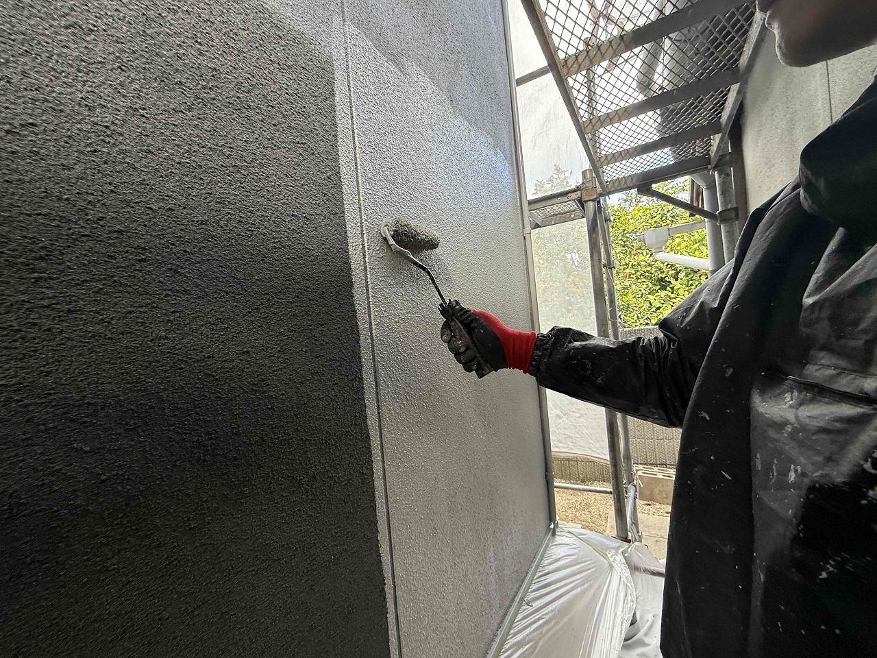 先日、外壁の塗装工事の下塗り(1回目塗装)が完了しており、本日は中塗り(2回目塗装)を行いました。次回も続きを行っていく予定となっております。引き続きよろしくお願いいたします!?