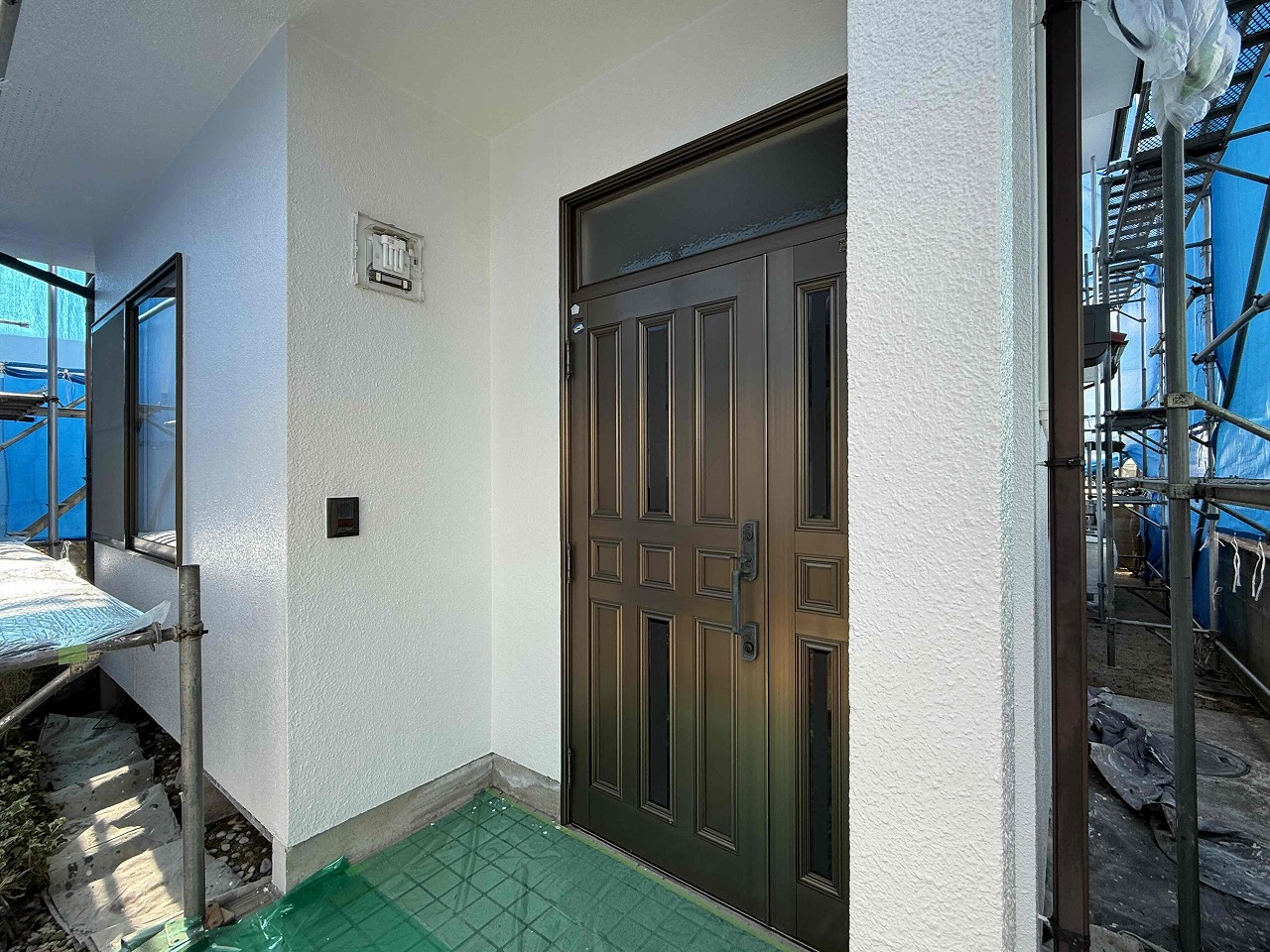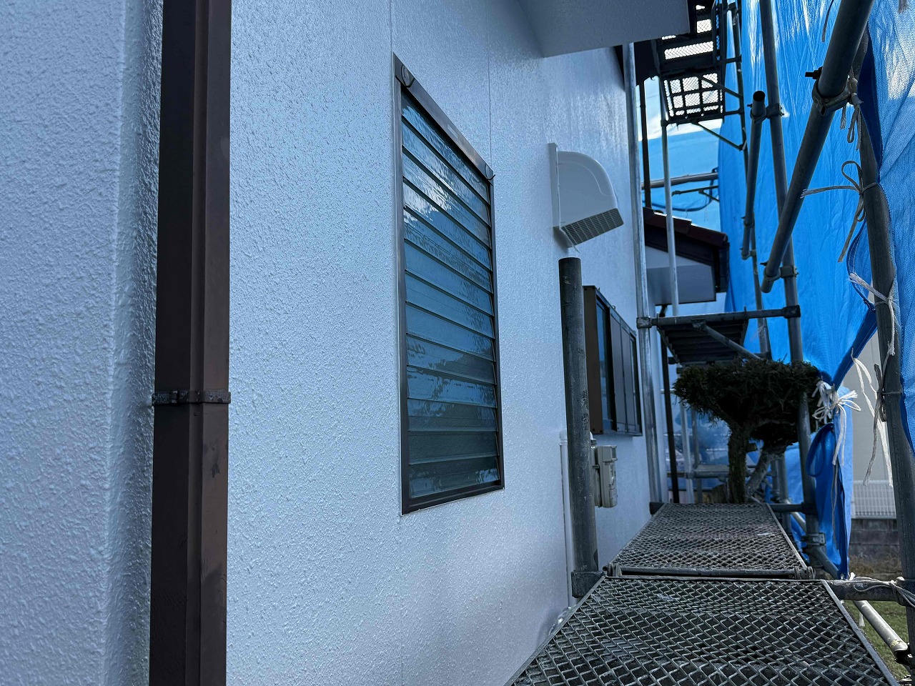 先日、外壁塗装の中塗り(2回目塗装)が完了しており、本日は上塗り(3回目塗装)を行いました。次回、屋根塗装を行っていく予定となっております。引き続きよろしくお願いいたします!?