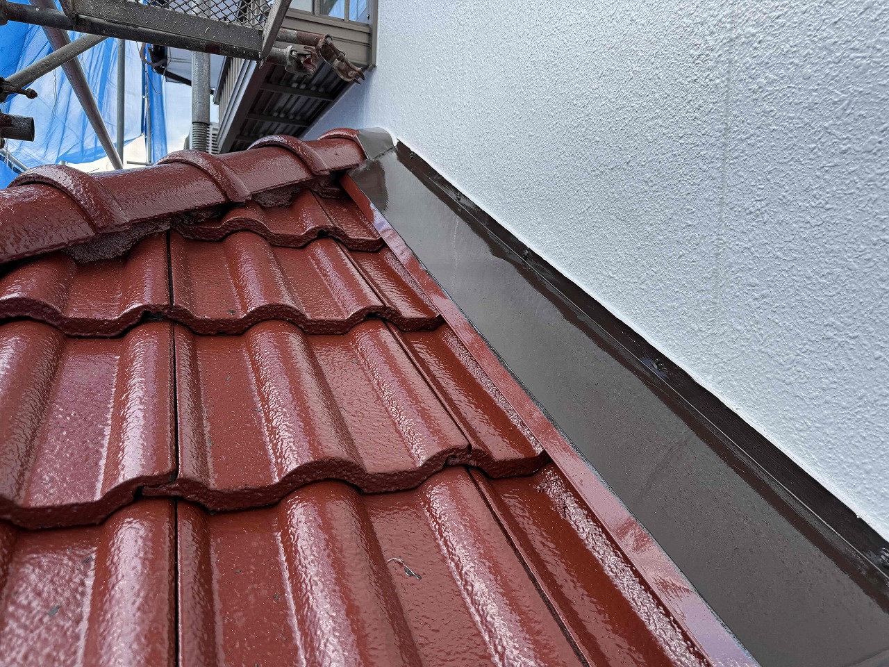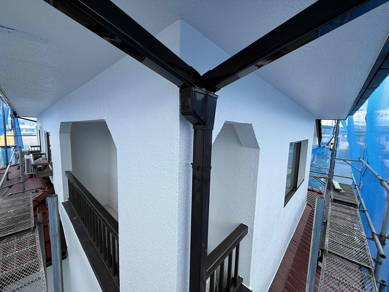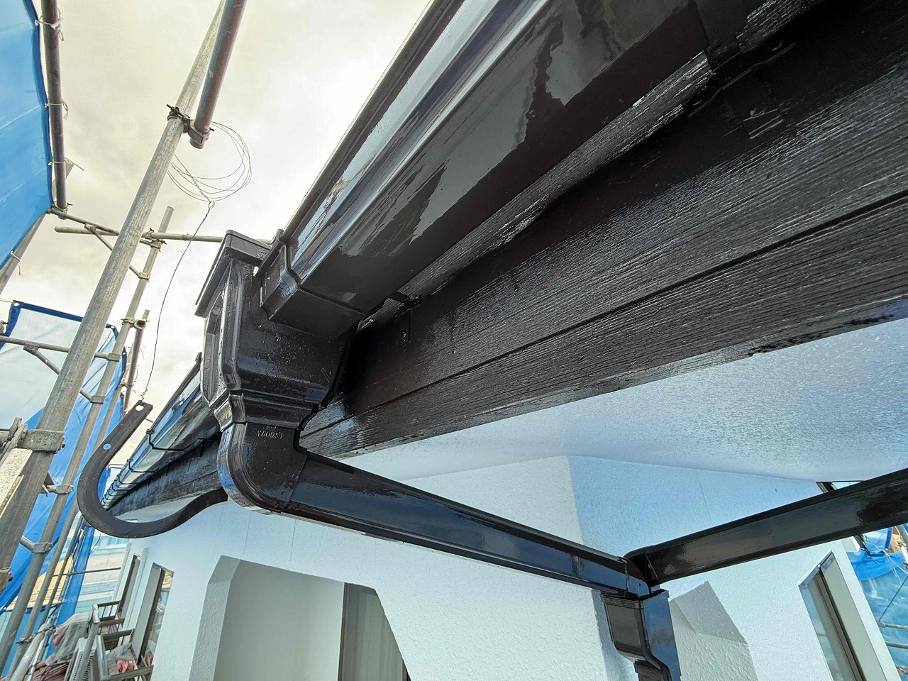 本日、雨樋と水切り板金等の付帯パーツ類の塗装(日本ペイント使用)を行いました!