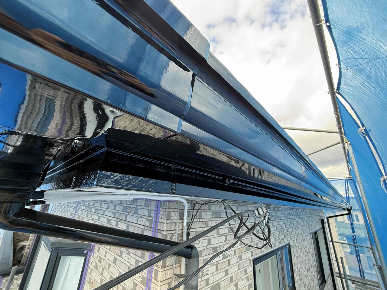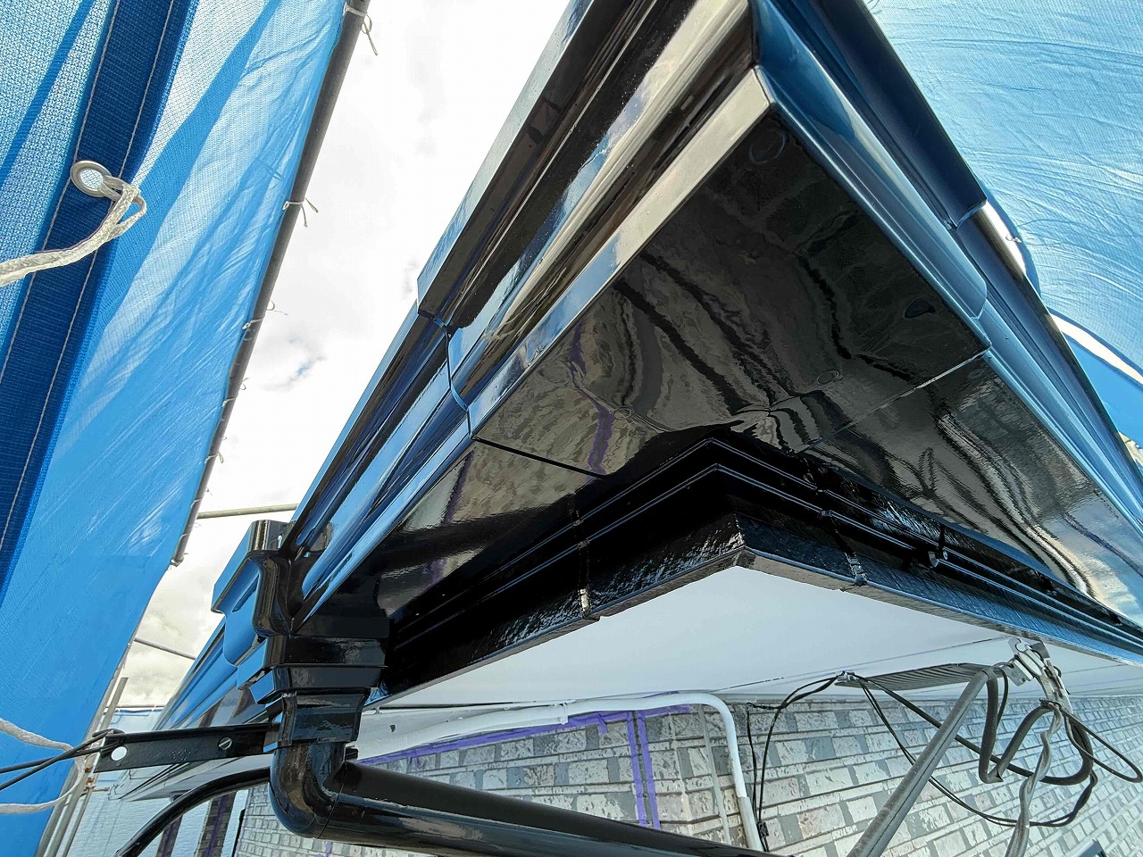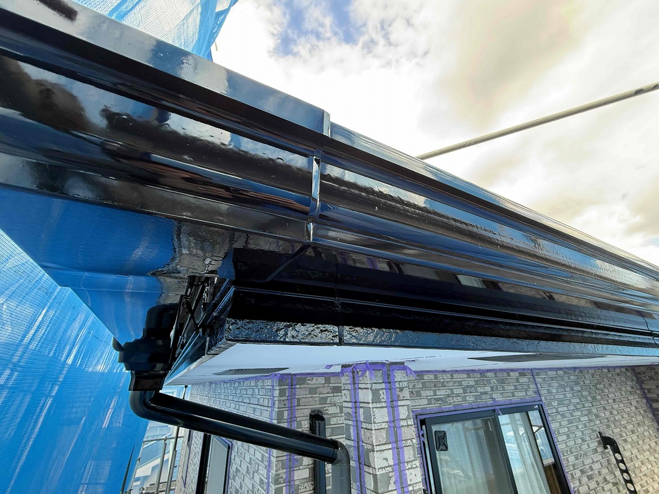 先日に引き続き、雨樋の塗装工事と目地・窓枠コーキング工事を行いました。