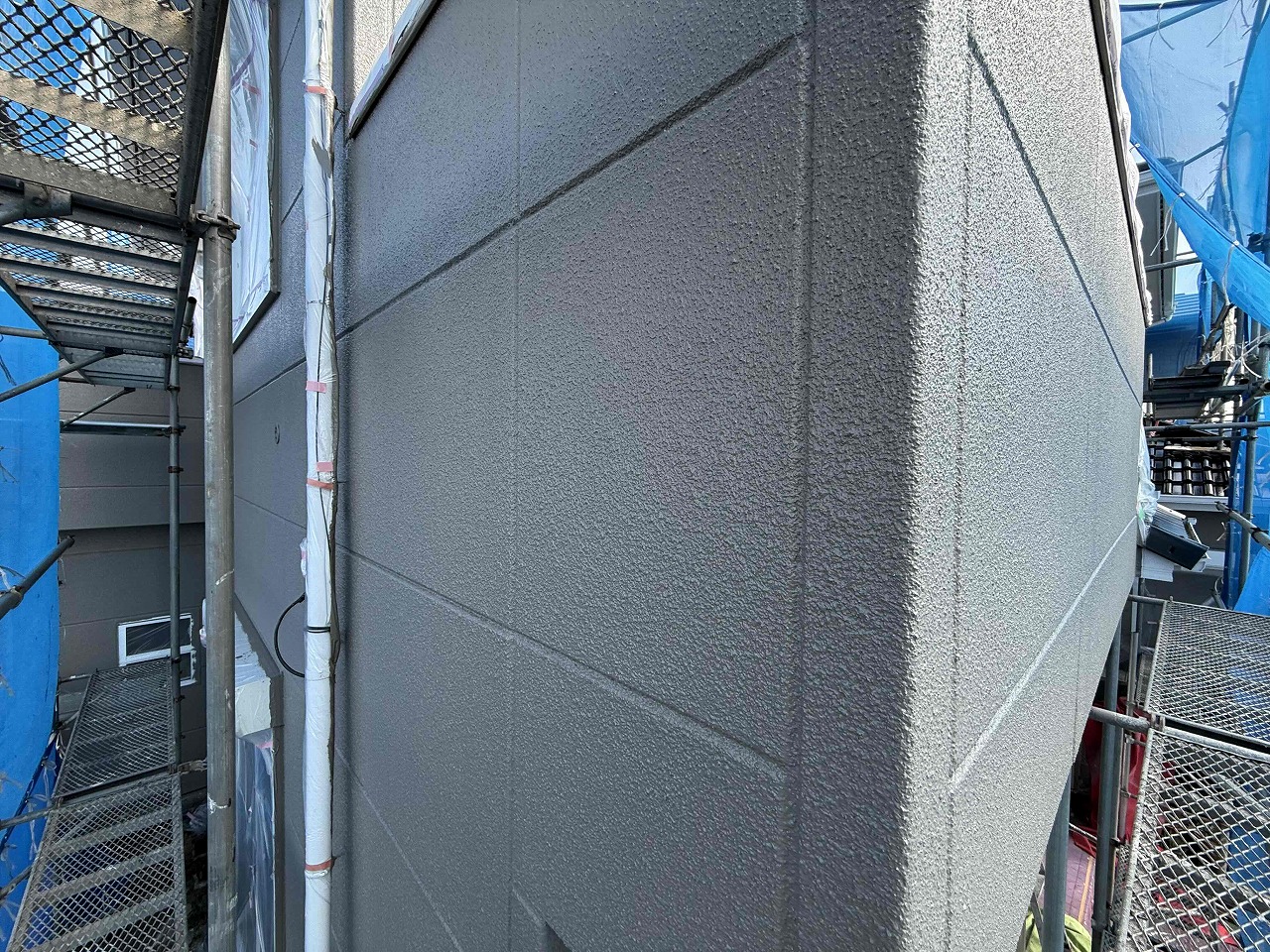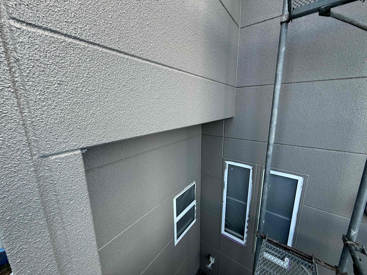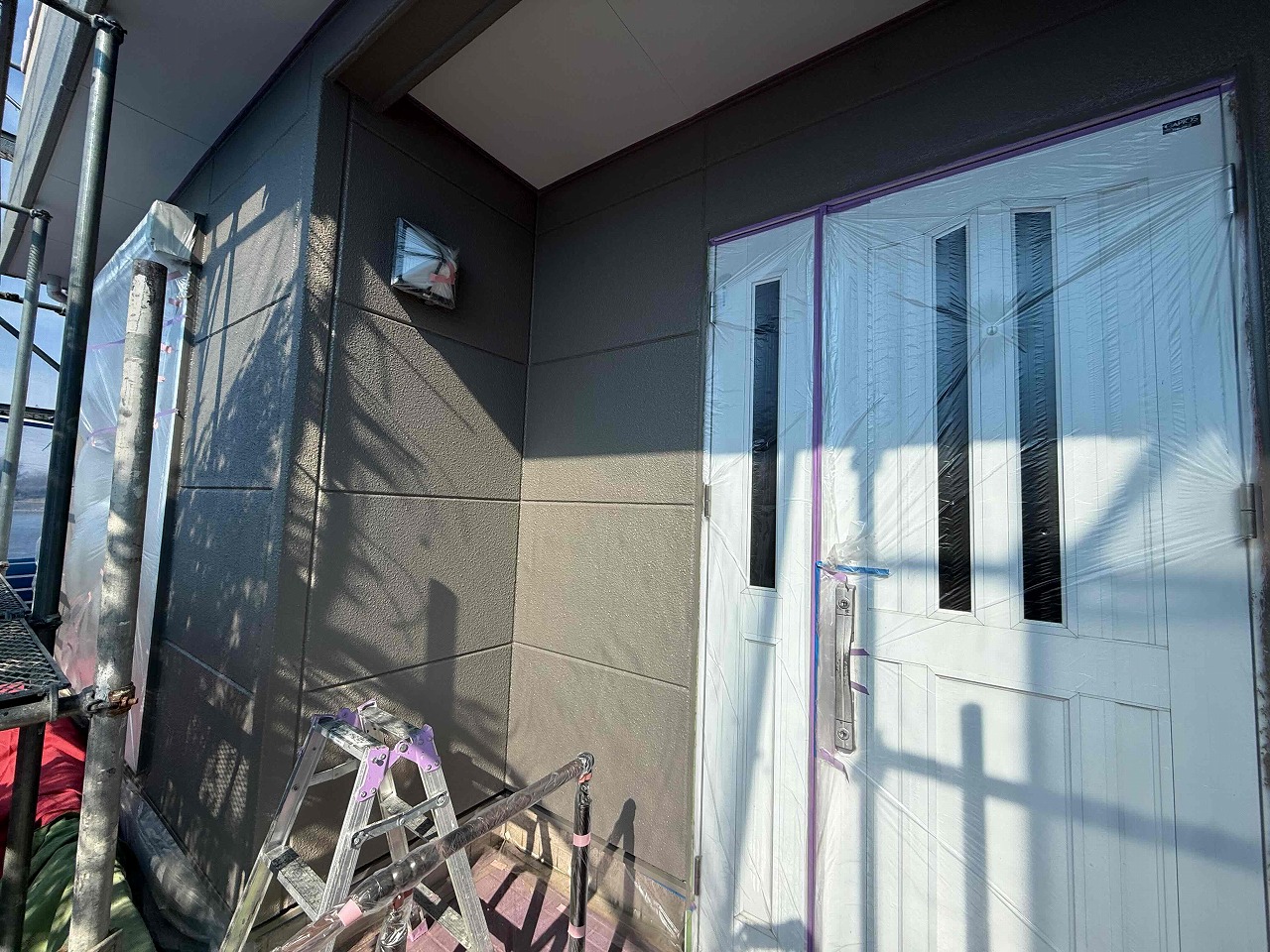 先日、外壁塗装の中塗り(2回目塗装)が完了しており、本日は上塗り(3回目塗装)を行いました。次回は、屋根塗装工事の下塗り(1回目塗装)を行っていく予定となっております。引き続きよろしくお願いいたします!?