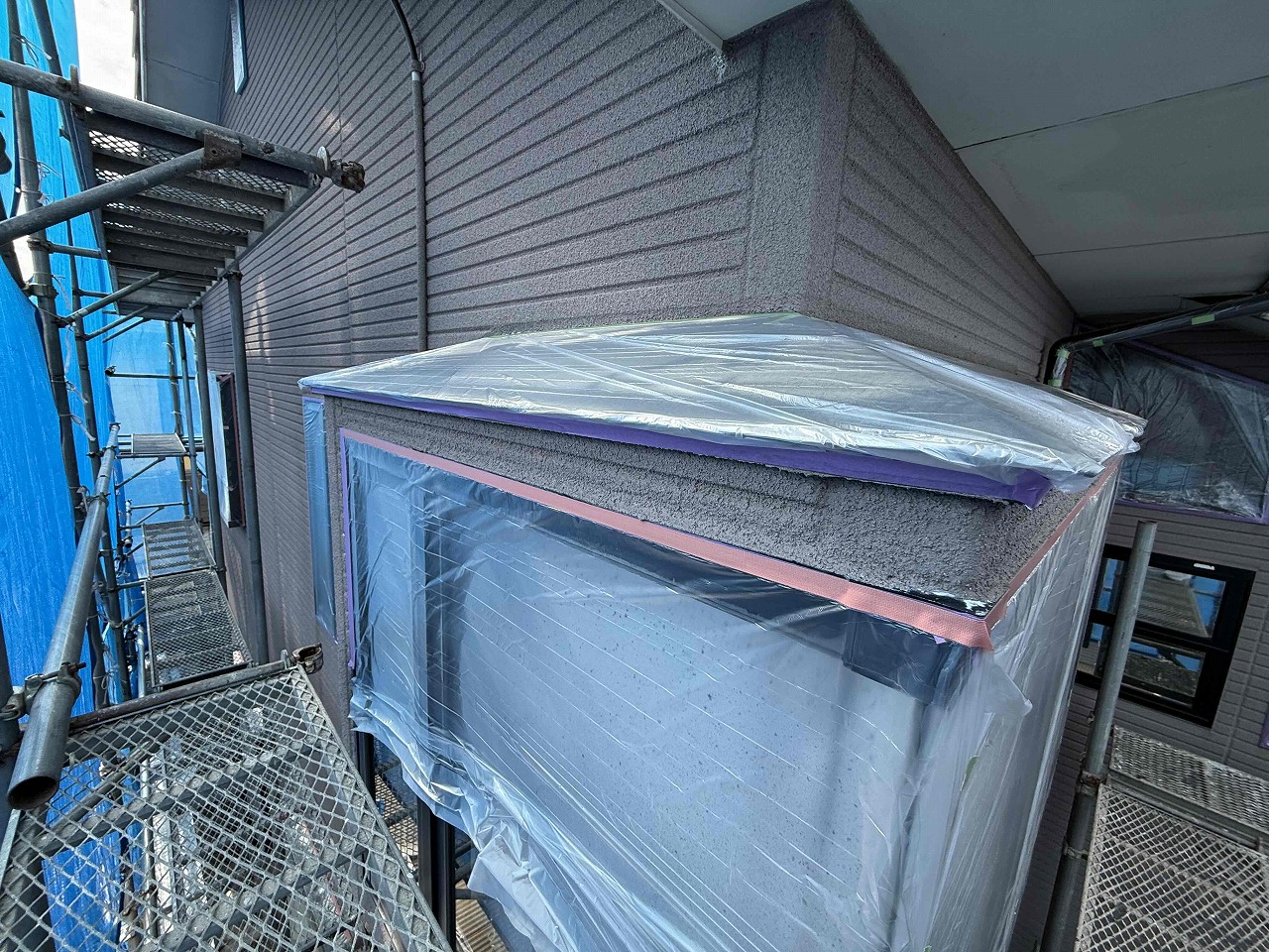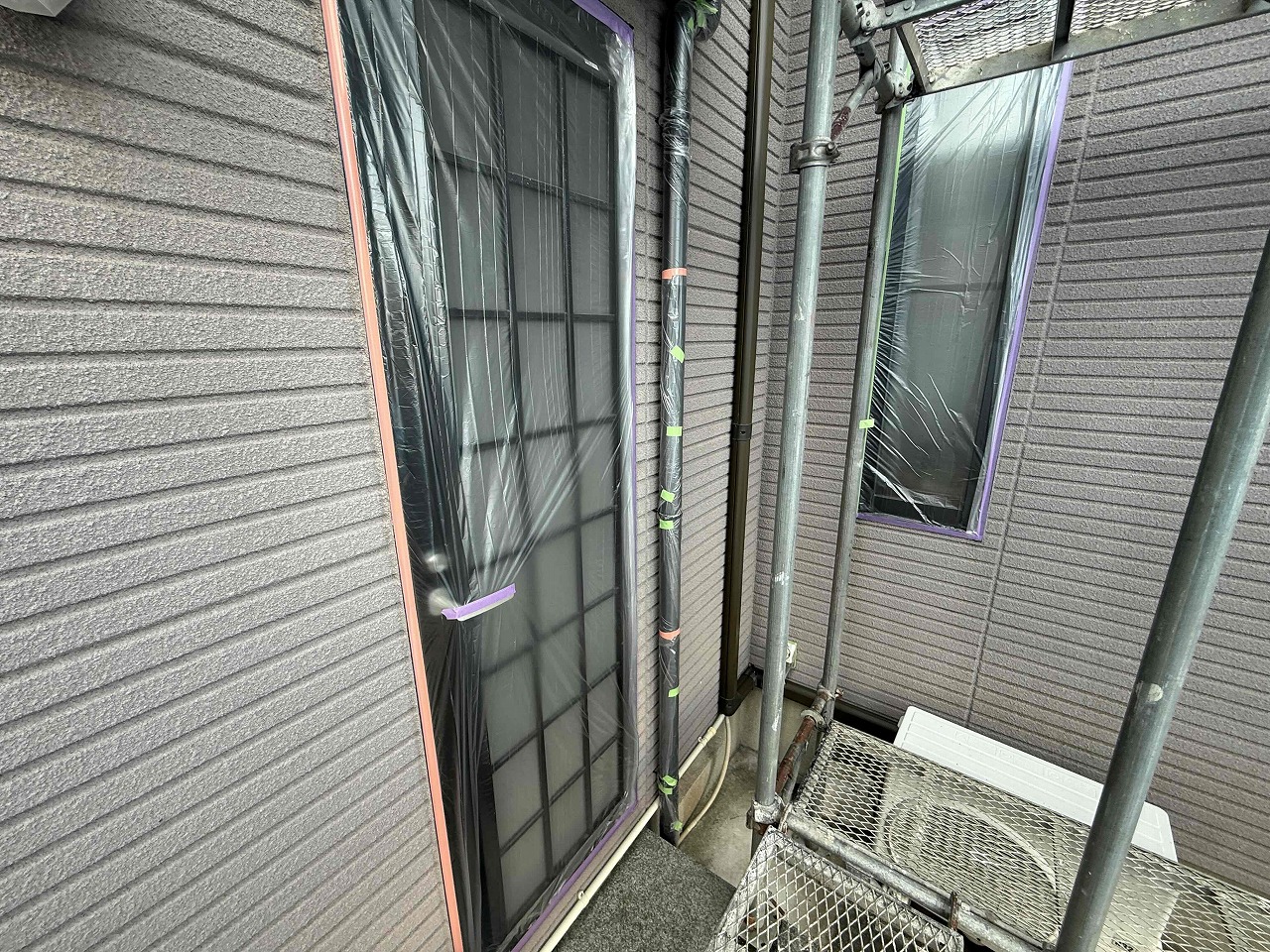 先日、高圧洗浄が完了しており、本日、養生作業を行いました。