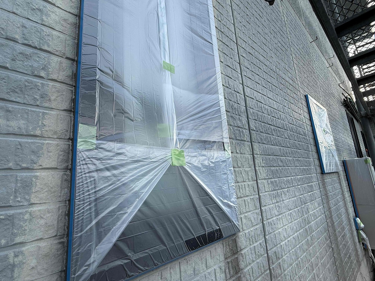 先日、高圧洗浄が完了しており、本日は養生作業を行いました!