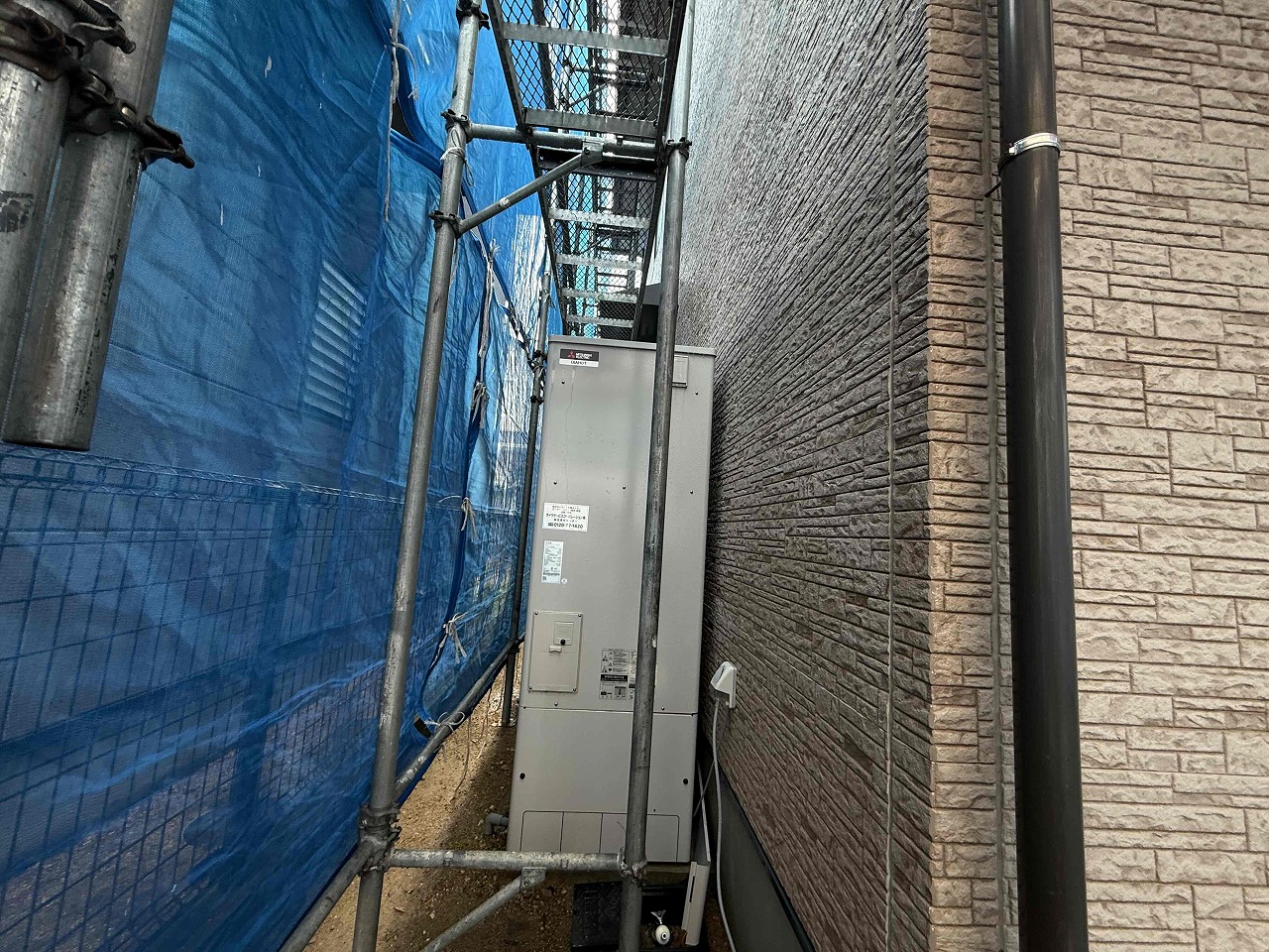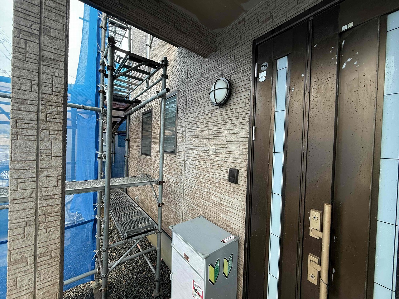 先日、足場の設置が完了しており、本日は高圧洗浄を行いました!