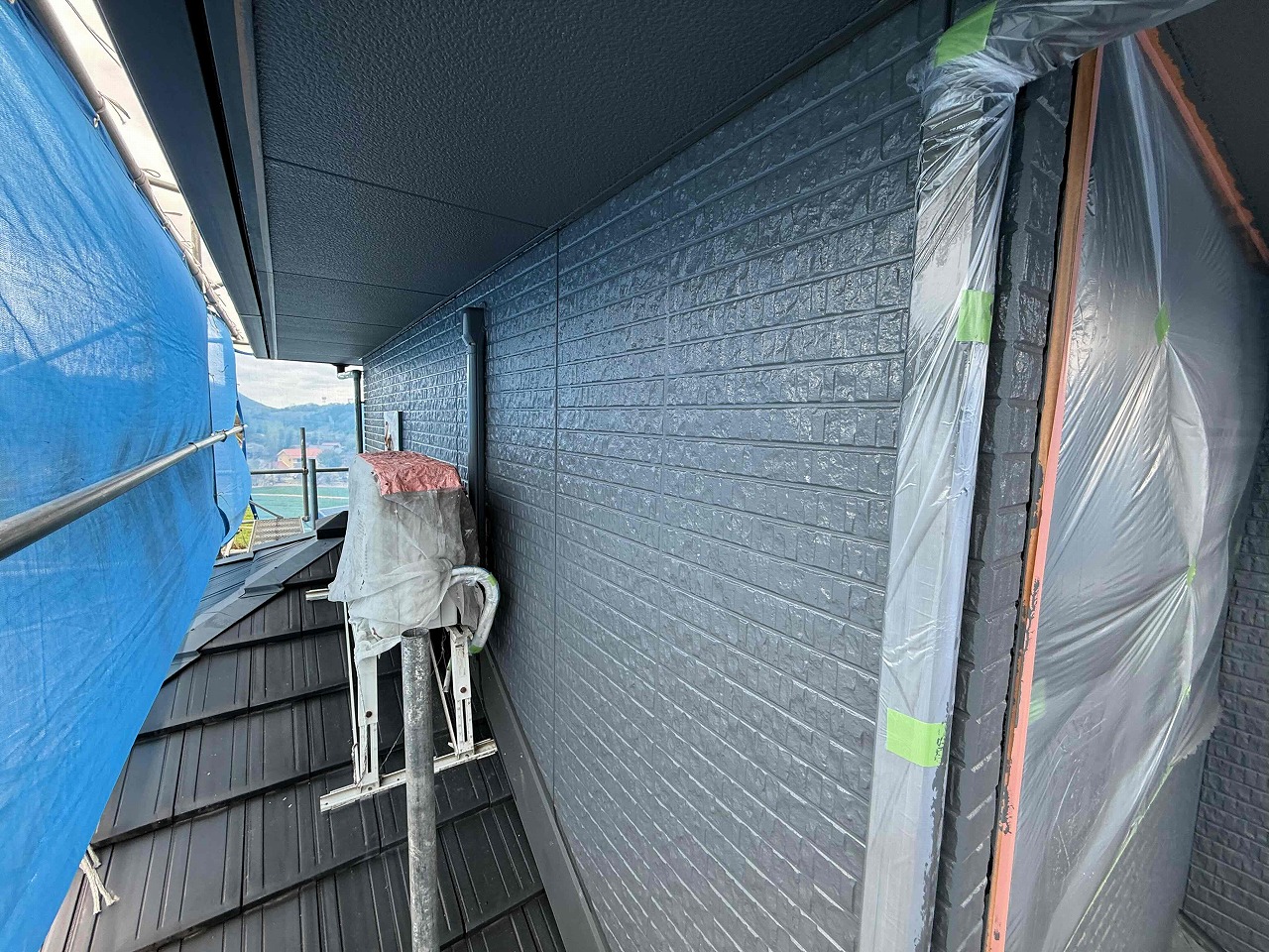 先日に引き続き、外壁塗装の中塗り(2回目塗装)を行いました。次回はローラーで塗装できない部分をハケを使って塗装し、上塗り(3回目塗装)を行っていく予定となっております。引き続きよろしくお願いいたします!😄