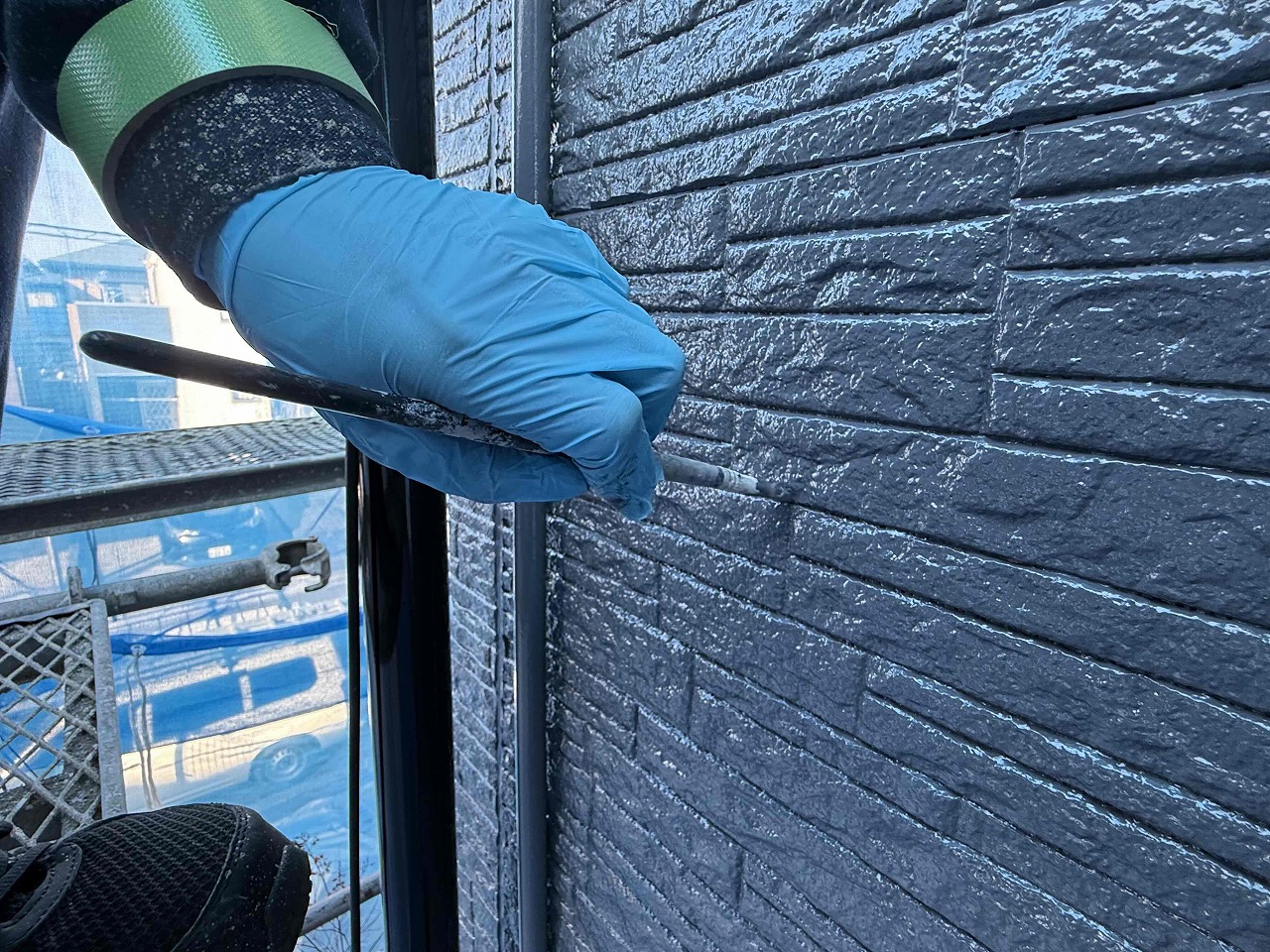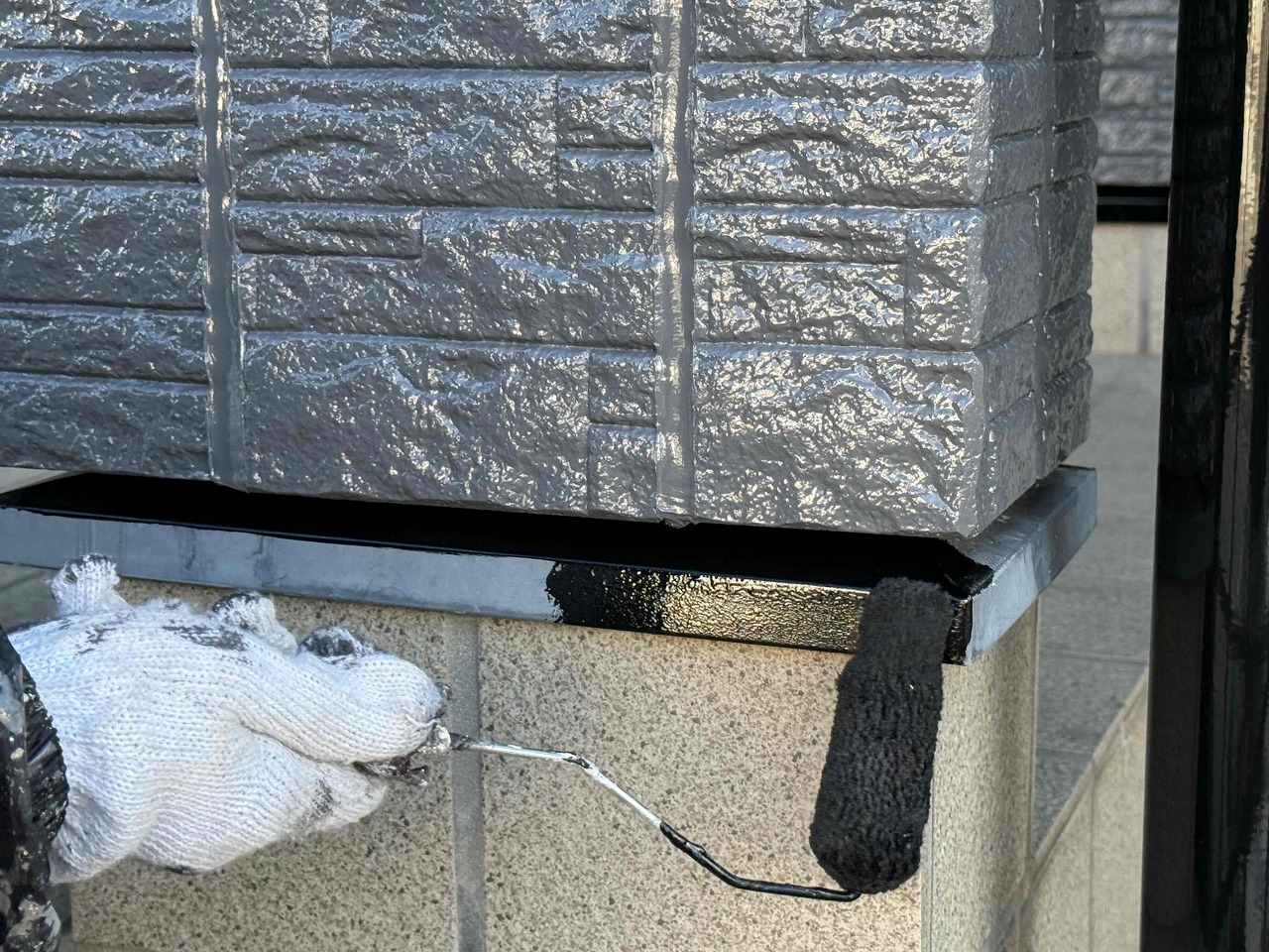 先日、外壁塗装の中塗り(2回目塗装)が完了しており、本日は上塗り(3回目塗装)と細かい部分を刷毛にて塗装いたしました。それと併用し、雨樋の塗装や水切りの塗装を専用の刷毛とローラーを使い分けながら丁寧に重ね塗りしていきました。次回、最終チェックと手直しを行いすべての塗装工事が完了する予定となっております。少し期間をあけ、屋根カバー工法工事を順次行っていく予定となっております。引き続きよろしくお願いいたします。