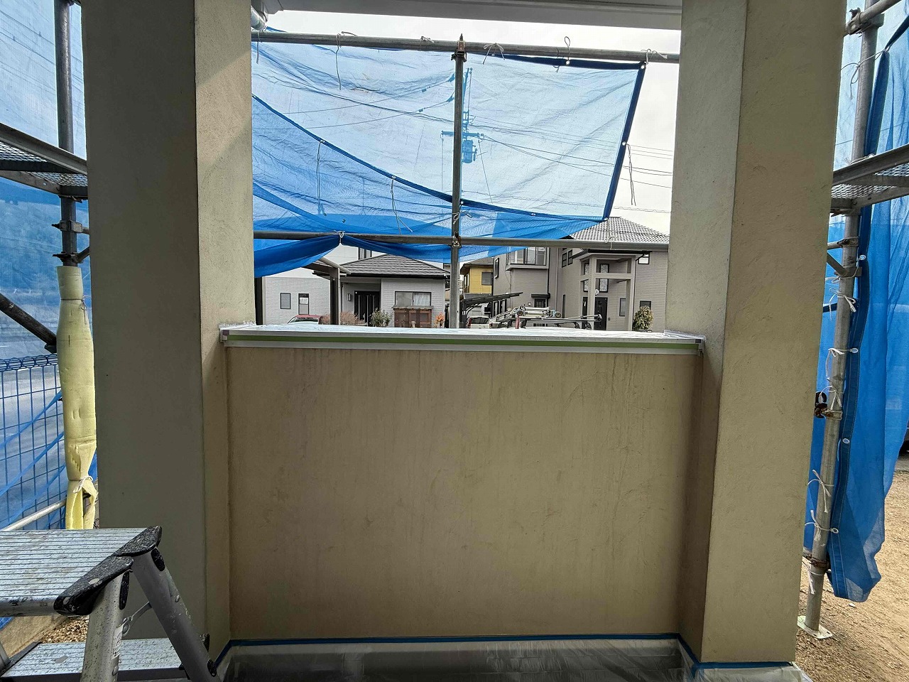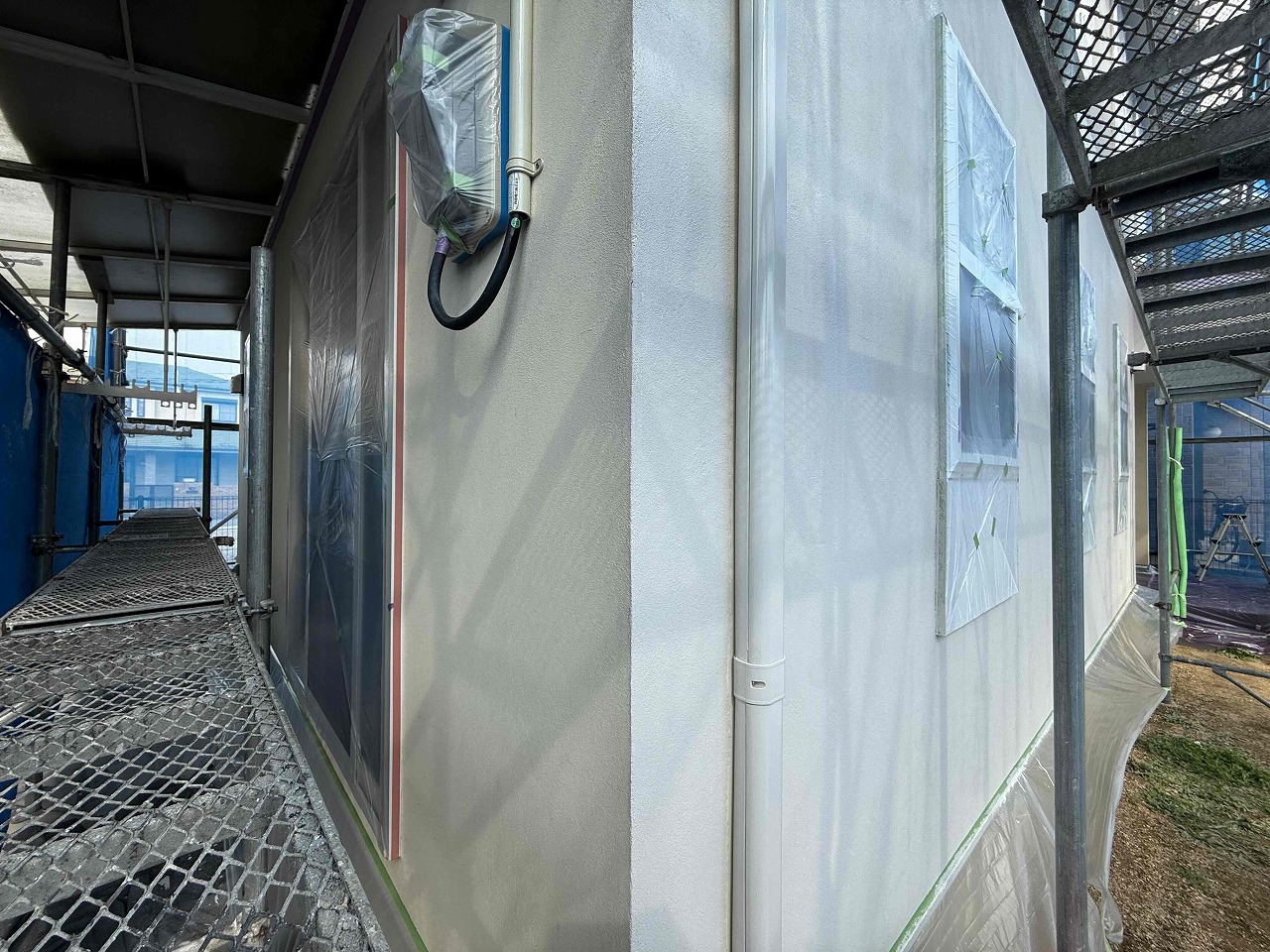 先日、足場の設置と高圧洗浄が完了しており、本日は養生作業と外壁の塗装工事の下塗り(1回目塗装)を行いました。次回、中塗り(2回目塗装)を行っていく予定となっております。引き続きよろしくお願いいたします!😄