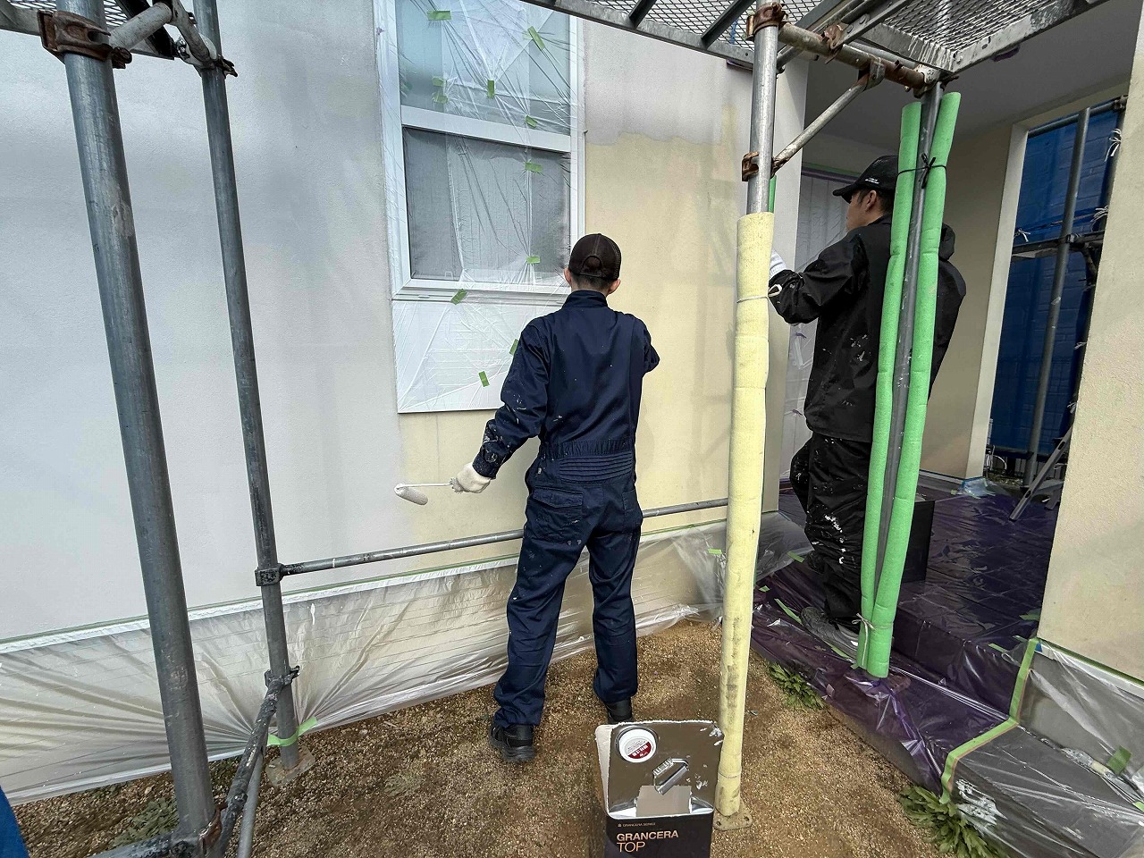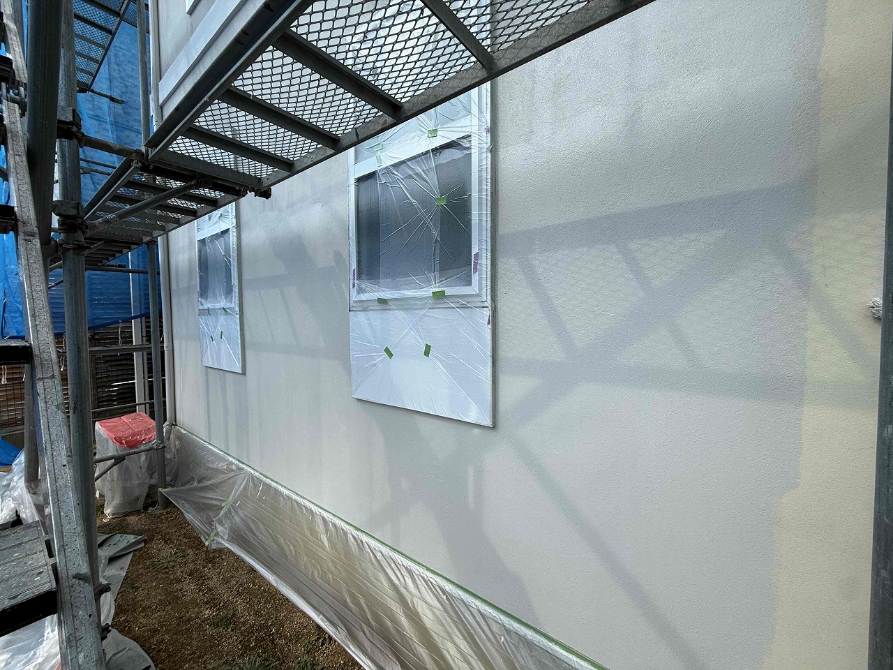 先日、外壁塗装の下塗り(1回目塗装)が完了しており、本日は中塗り(2回目塗装)を行い増した。次回、上塗り(3回目塗装)を行っていく予定となっております。引き続きよろしくお願いいたします!😄