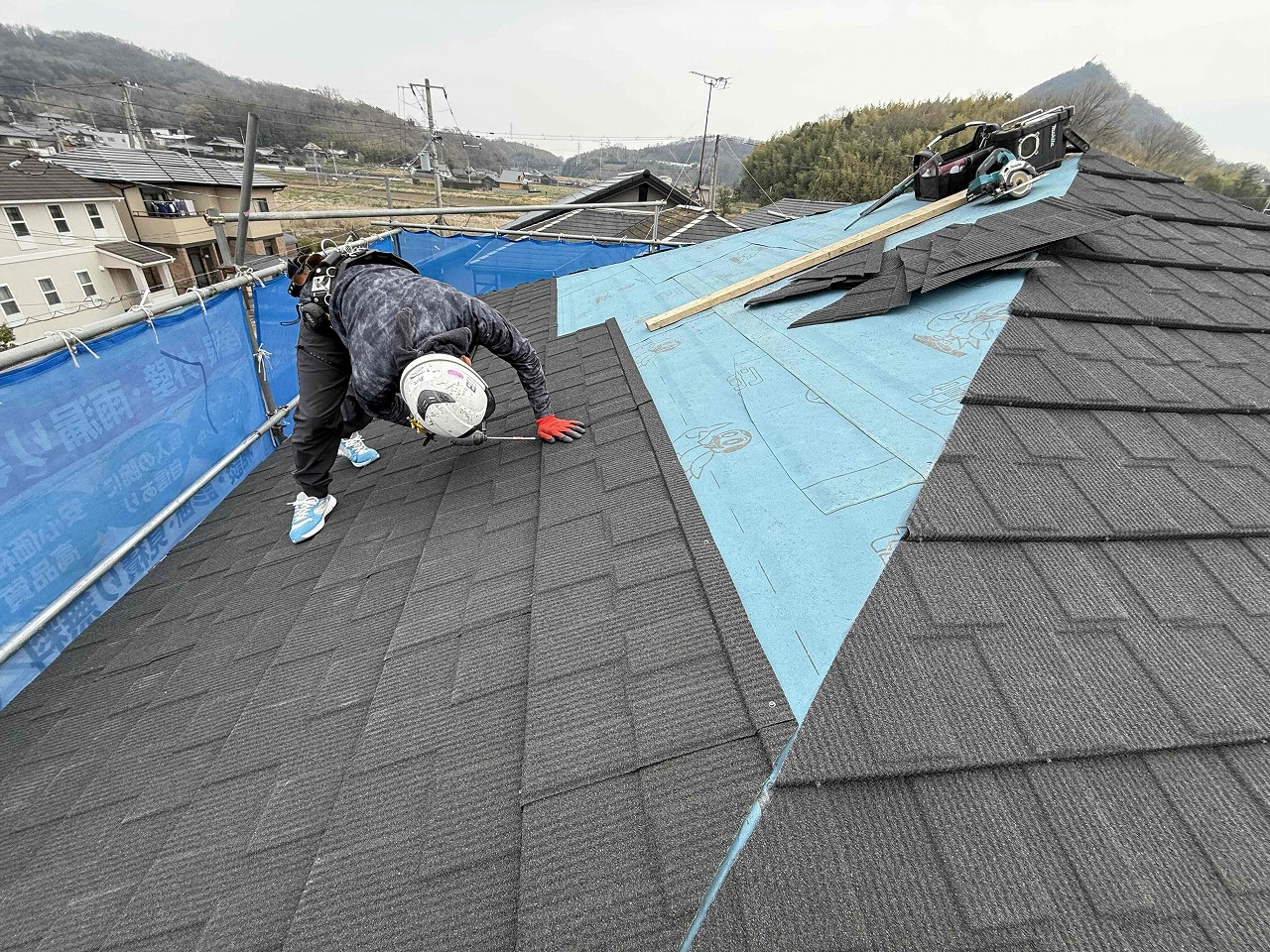 先日、ルーフィング(防水シート)の施工が完了しており、本日、DECRA屋根の設置を行いました。明日も続きを行っていく予定となっております。引き続きよろしくお願いいたします!😄