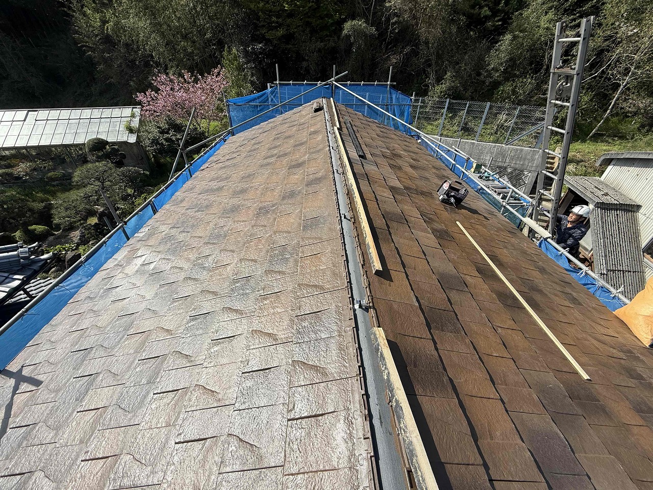香川県高松市塩江町にて瓦葺き替え工事(ケイミューROOGA鉄平)を行いました!