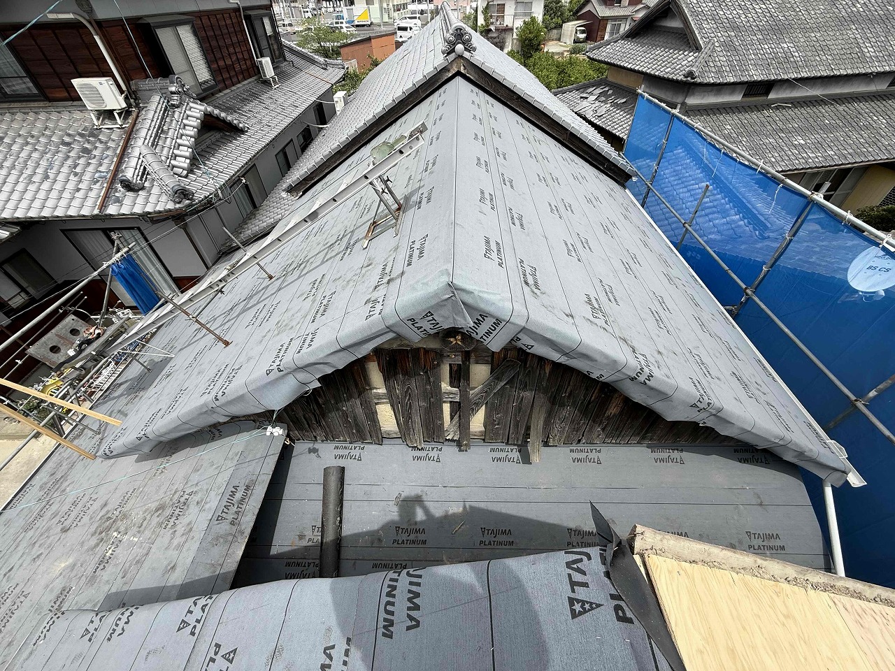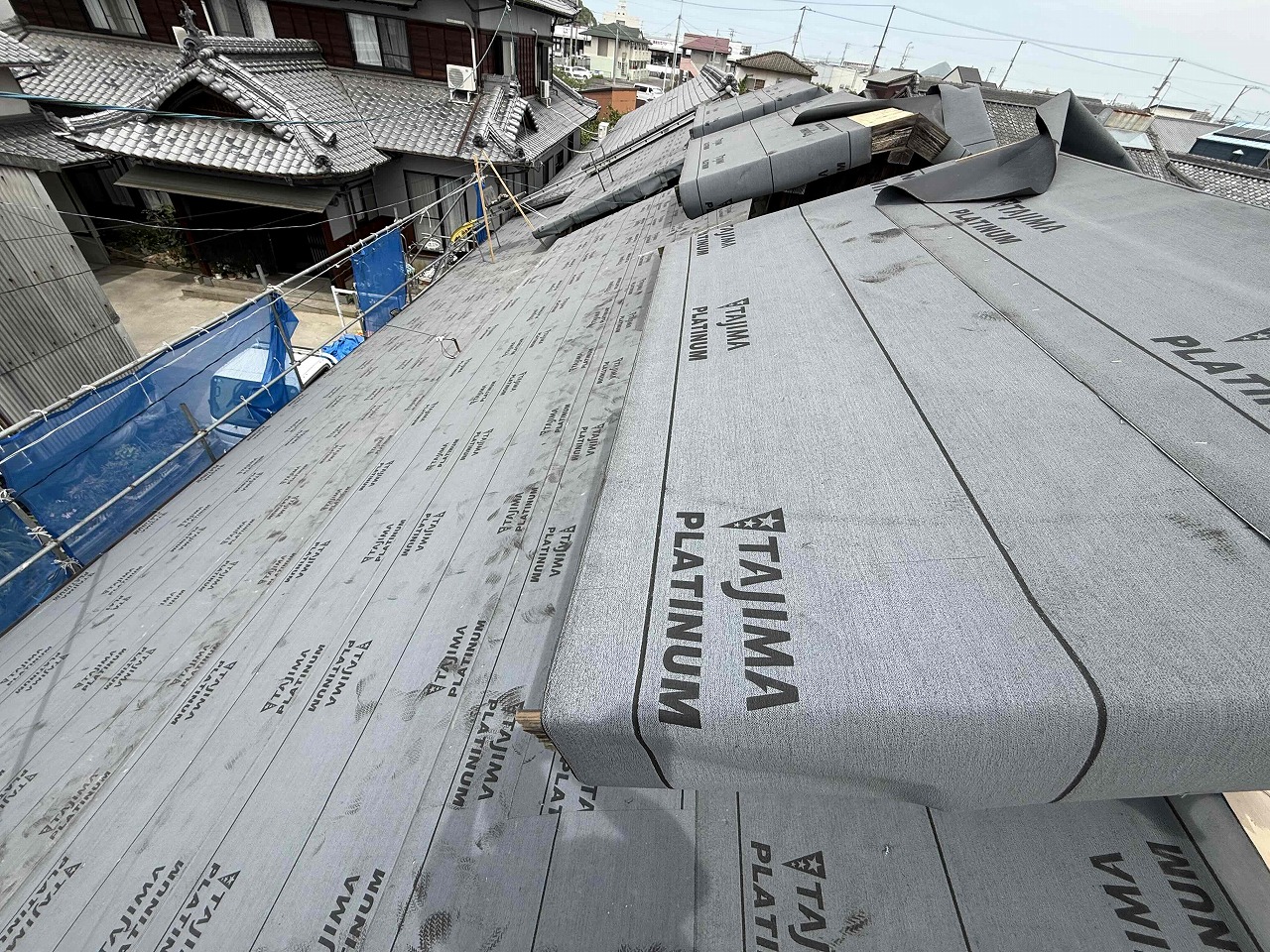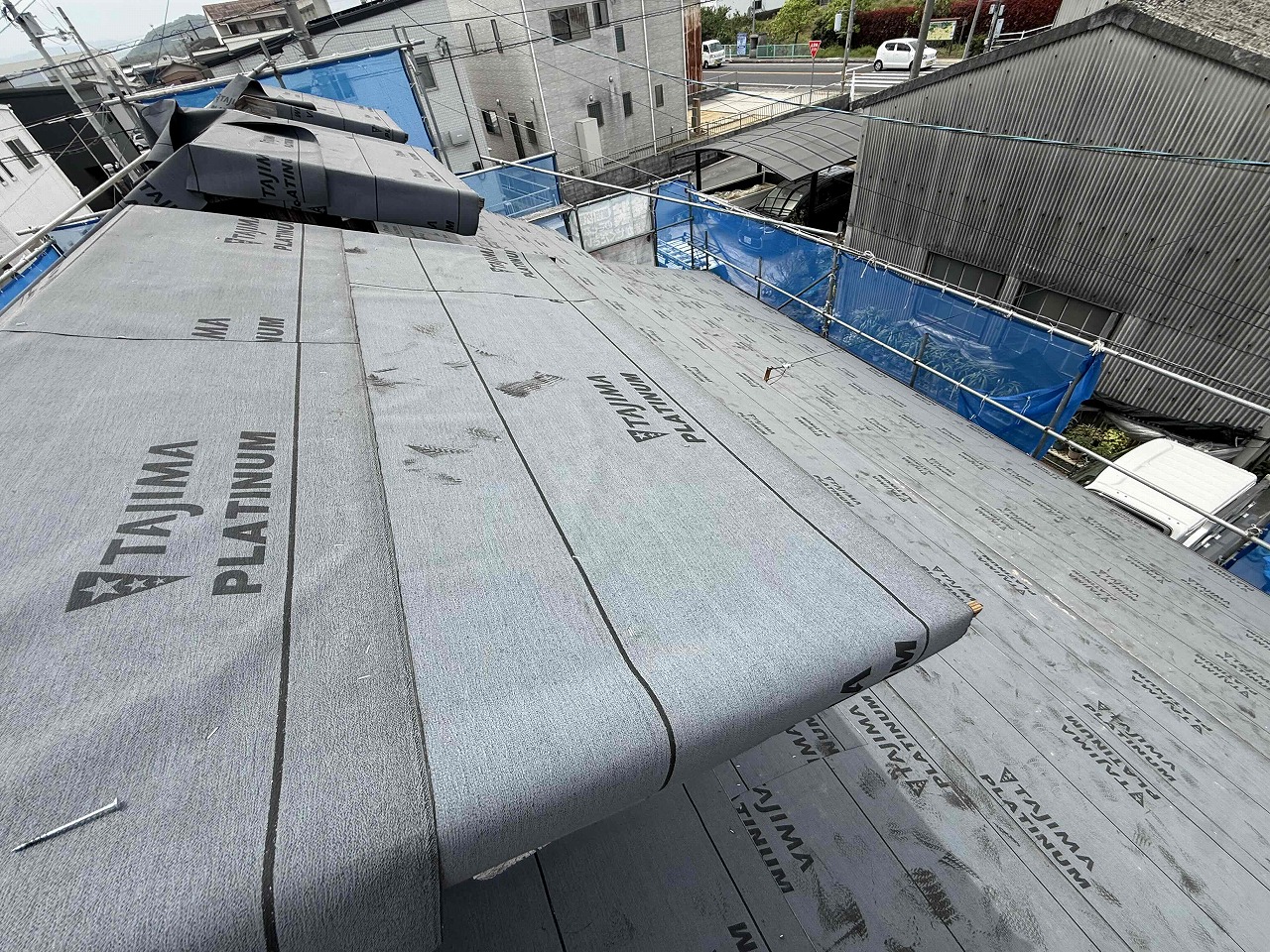 先日に引き続き、ルーフィング(防水シート)の施工を行いました。次回、破風板の造作を行い、取り付け後、ケイミューROOGA雅を施工していく予定となっております。引き続きよろしくお願いいたします!😄