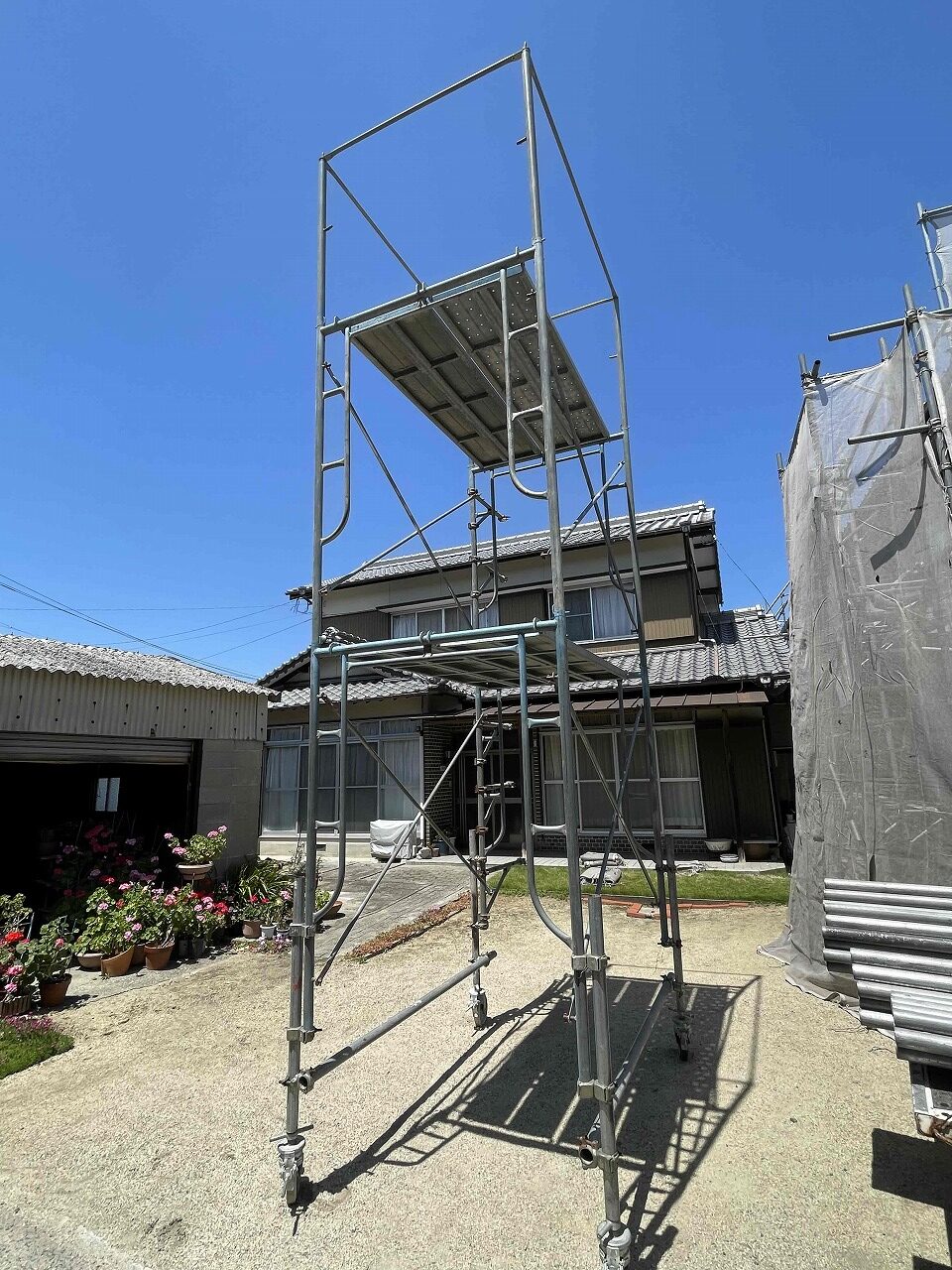 こちらの物件は三面足場を設置し、残り一面は足場を組んでしまうと車の出入りができなくなってしまうため、ローリング(移動式足場)にて施行を進める予定となっております。