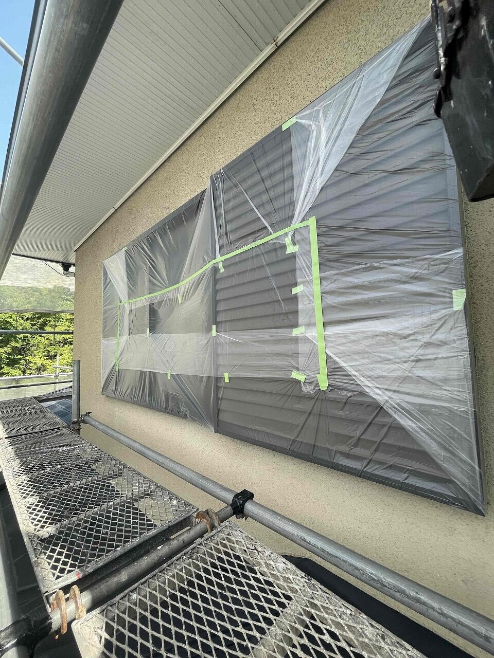 本日、養生作業が終了し、明日より軒天塗装工事を行っていく予定となっております。