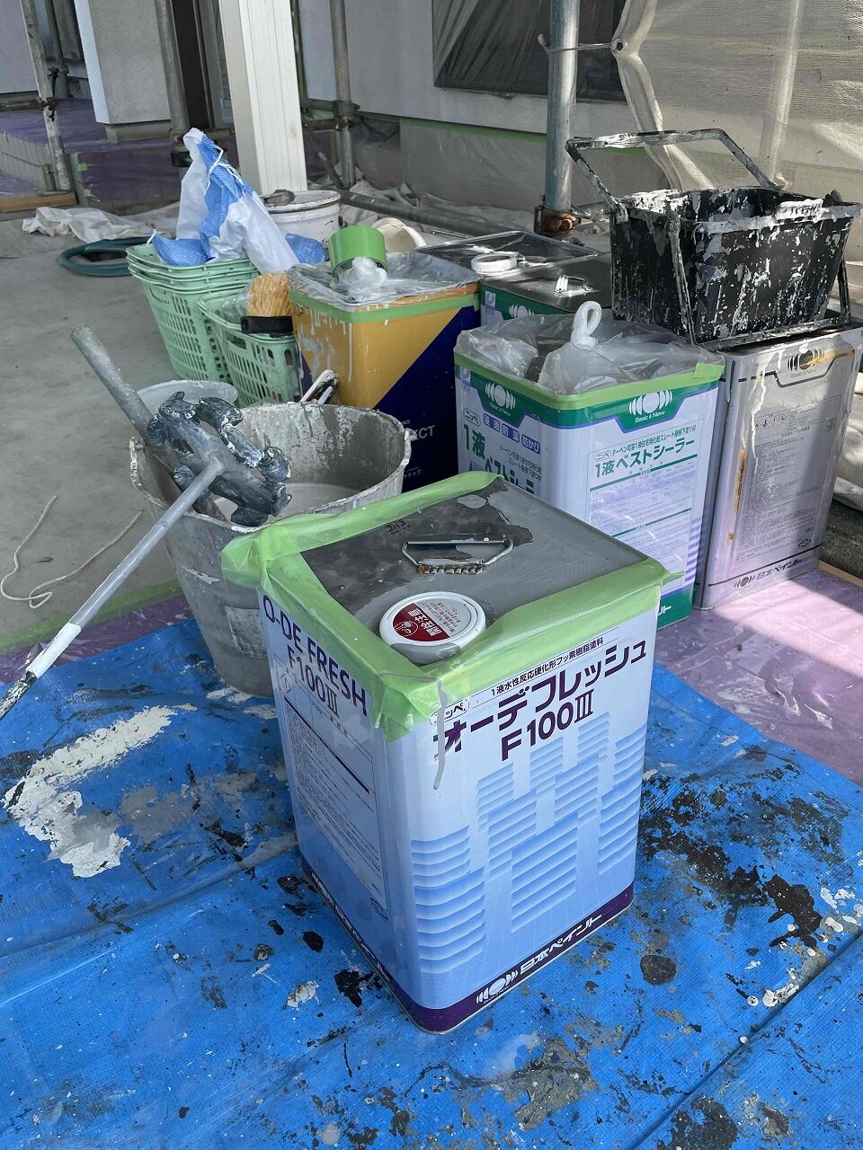 外壁の塗料は日本ペイントオーデフレッシュF(フッ素)を使用させていただいております。