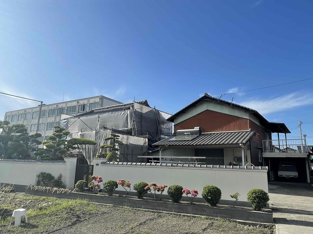 香川県高松市多肥上町Y様邸にて外壁塗装工事の足場を設置いたしました!