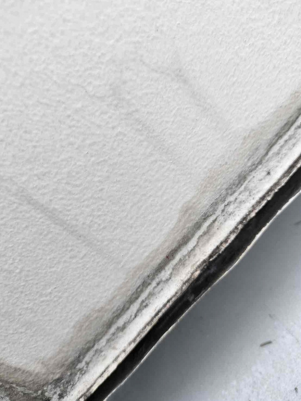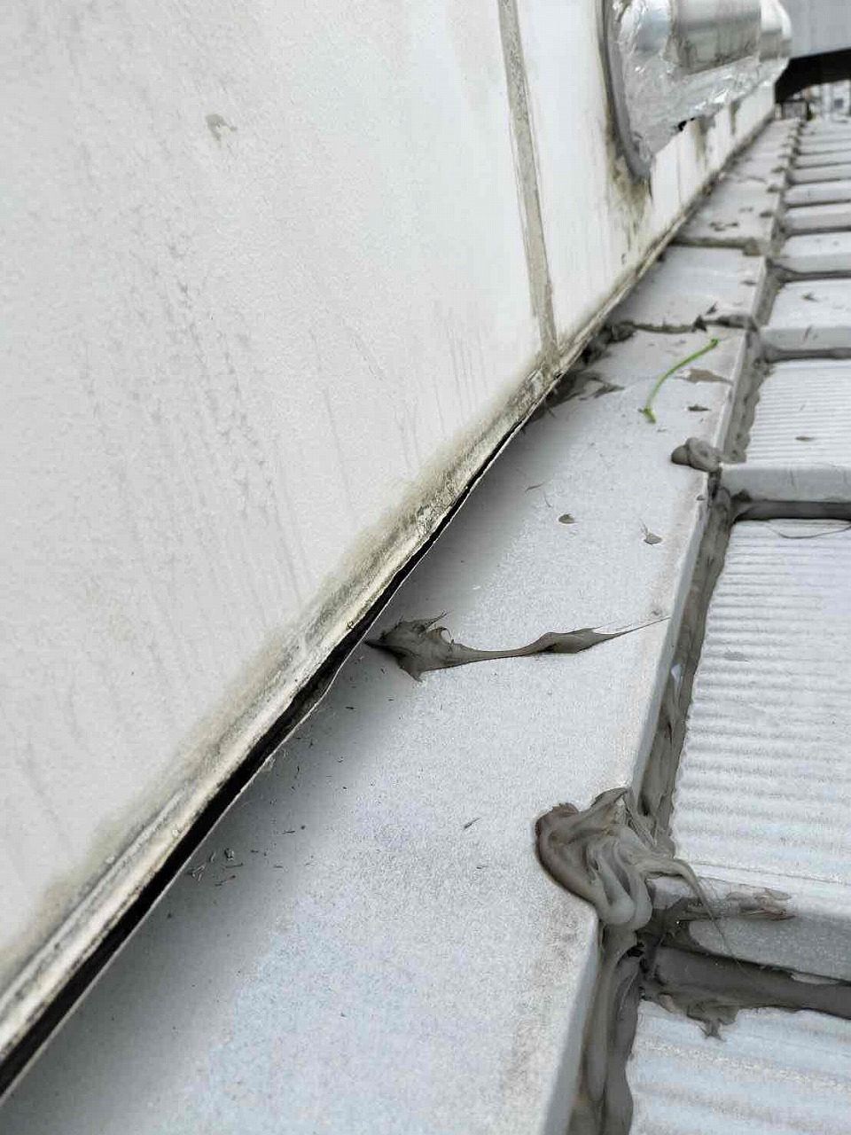 屋根に上ったところ、水切り上部のコーキングが経年劣化で隙間ができていました。